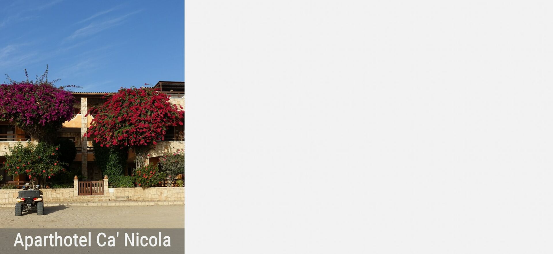 16.172137 -22.914886 | Gerade mal 50 m vom Strand entfernt befinden sich die 27 Apartments des Aparthotels Ca' Nicola. Das persönlich und familiär geführte, sowie liebevoll gestaltete Aparthotel, bietet eine attraktive Lage mit Flair für Gäste, die das Individuelle lieben. WLAN ist ohne Gebühr verfügbar und auch das Frühstücksbuffet ist im Preis enthalten. | €€ | Sal Rei, Ilha da Boavista | http://www.canicola.com/ | info@canicola.com | Tel.: +2382511793 | siehe Touren 66–75 |