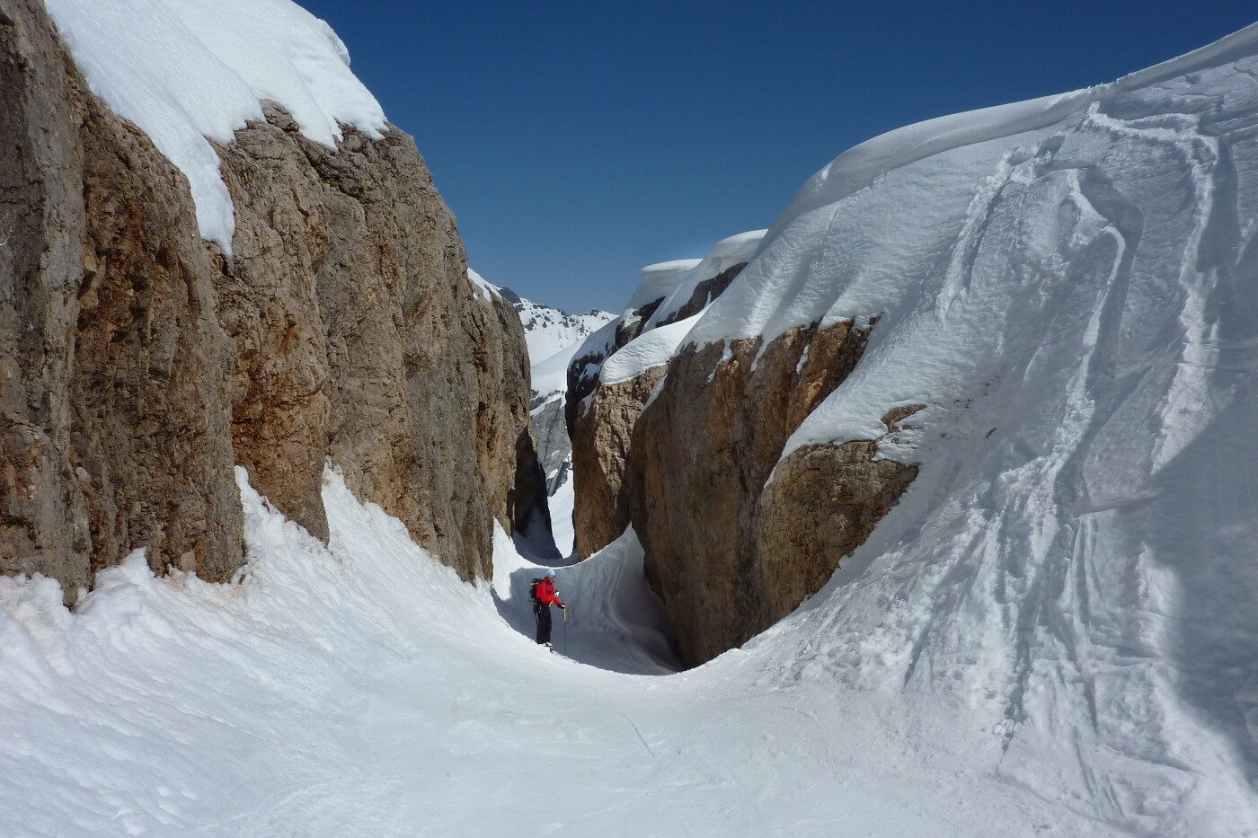 Variantenabfahrten - Druchschlupf am Marmolata Canyon
