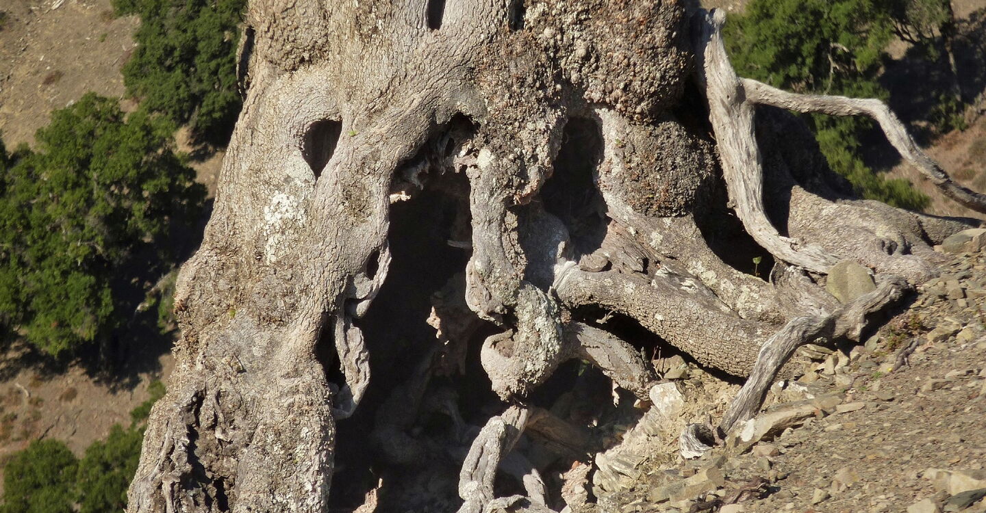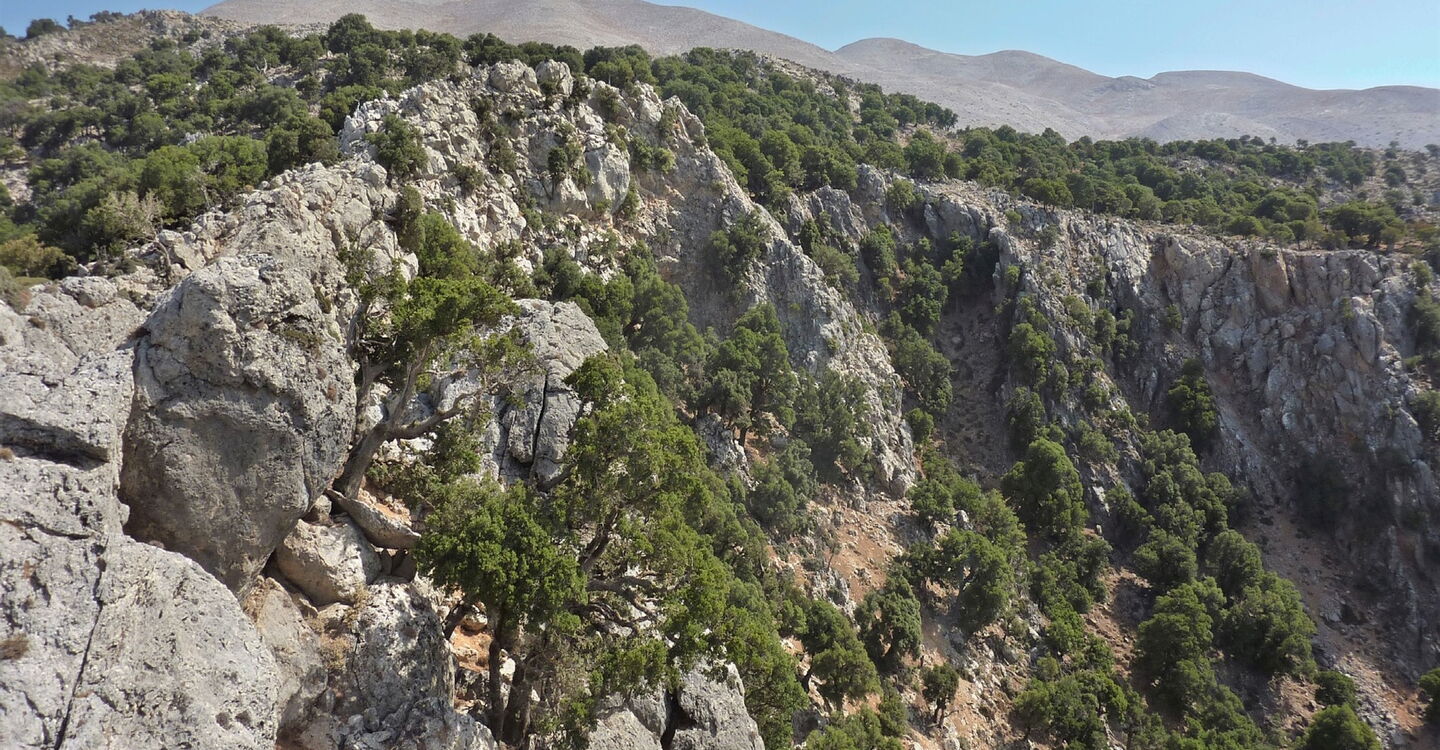 Heute machen wir neben dem Wandern noch eine interessante geobotanische Exkursion, denn wir durchlaufen drei Höhenstufen der Vegetation auf Kreta. Wir starten in der gerade noch alpinen Stufe mit Dorn- und Igelpolsterformationen. Dann gelangen wir schnell in die mediterrane Hartlaubstufe mit den immergrünen Eichenwäldern. Und schlussendlich tauchen wir ein in die Macchie, charakterisiert durch immergrünen Buschwald, der durch menschliche Eingriffe entstanden ist und durch Kultivierung auch erhalten wird. Dabei kommen wir an 800 Jahre alten Olivenbäumen vorbei. Schnell erreichen wir das Bergdorf Fourfourás am Fuße des Psiloritis. Wir erleben unberührte Natur mit allen Sinnen.