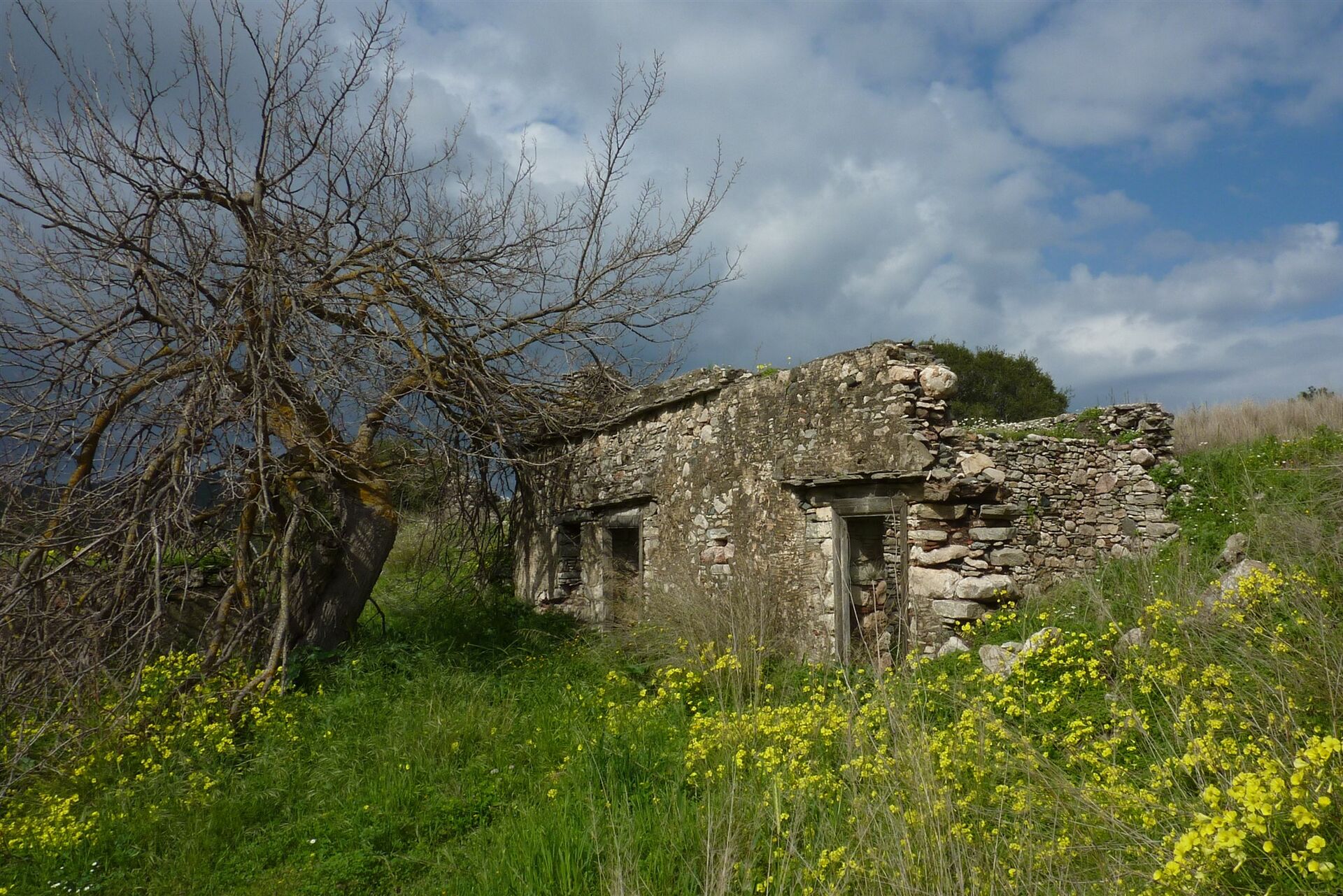 An diesem Wegpunkt 5 gehen wir geradeaus, kommen an der Kapelle Agios Nanous Panormitis vorbei, gehen bei der folgenden Weggabelung halb links und erreichen nach 320 m die (02) Ruinen von Nani (191 m). Wir treffen auf 6 gespenstische Ruinen oberhalb eines sehr fruchtbaren Hochtals. Uralte Olivenbäume und riesige Feigenbäume stehen in unmittelbarer Nähe.