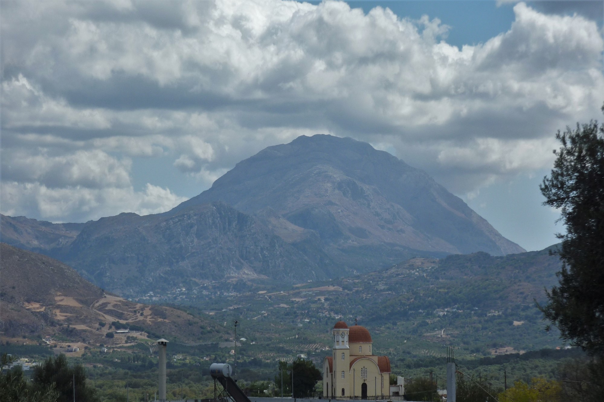 Ca. 200 m vor einem Einzelhaus mit braunen Fensterläden verlassen wir die Hauptpiste nach links durch das Ziegengatter. Wir treffen auf einen uralten Pfad, der teilweise so verwachsen ist, dass man ausweichen muss. Bei einer kleinen Kapelle geht es weiter auf einem betonierten Weg, nach 130 m gehen wir links und erreichen das Dorf Mountros. Wir passieren eine Taverne und gehen rechts an der Kirche vorbei, bis wir nach dem letzten Haus auf einem uralten Pfad mit Steinmauern weiterwandern. Nach 200 m zweigt links ein Pfad in die Schlucht ab – markiert mit 2 roten Strichen. An dieser 03 Schlüsselstelle (245 m) gehen wir geradeaus weiter. Im Talgrund queren wir eine Brücke und gehen fortan auf der Schotterpiste, die später in einen betonierten Weg übergeht. An der Weggabelung, wo links eine betonierte Spur bergauf führt, gehen wir halb rechts weiter.