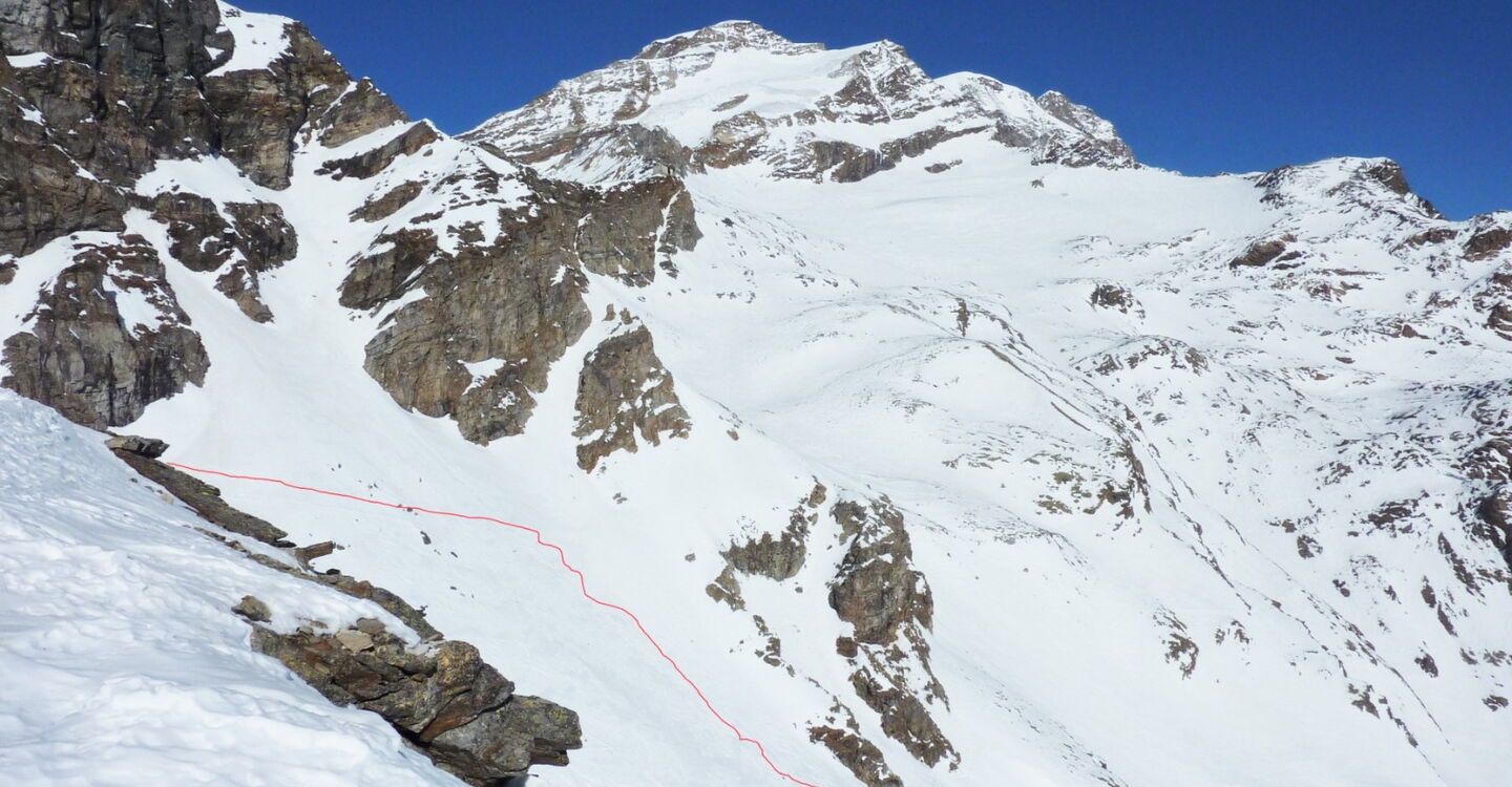 Nach einem kurzen Aufstieg und einer Abfahrt mit dem Ziel vor Augen kommt man wieder ins Skigebiet zurück. Die Abfahrt führt über einen Osthang. Folgende Ausrüstung wird empfohlen: Produkte für alpine Sicherheit im Schnee, Freerideski und Skitourenhelm. Es gibt keine Einkehr auf der Tour. Außer man nimmt vor oder nach der Tour eine Stärkung in dem Rifugio Città di Vigevano. Beste Jahreszeit: Januar bis April. Uns erwarten kurze Stücke mit bis zu 30° Hangneigung.