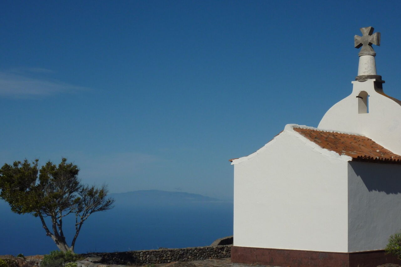Nach 80 m folgen wir rechts der Ausschilderung Richtung (02) Ermita de San Isidro Labrador (803 m), bis wir auf einen Parkplatz treffen. Nach weiteren 500 m auf einem gepflasterten Weg haben wir den Mirador de Tagaragunche auf der Montaña del Calvario 806 m und die Ermita de San Isidro Labrador erreicht. An dieser Stelle wachte ein Posten, um nach Piraten Ausschau zu halten oder in Kriegszeiten vor Angreifern zu warnen. Bei guter Sicht ergeben sich atemberaubende Fernblicke: Im Osten angefangen sieht man den Teide auf Teneriffa, bei besonders guter Sicht Gran Canaria, San Sebastián, den Flughafen von La Gomera, die vorgelagerten Bergrücken auf La Palma und El Hierro. Nach dem Abstieg, wir befinden uns bereits auf der Asphaltstraße, biegen wir nach 80 m auf den links beginnenden Pfad ab. Auf dem Camino verlieren wir schnell an Höhe und befinden uns jetzt direkt unterhalb der Montaña del Calvario.