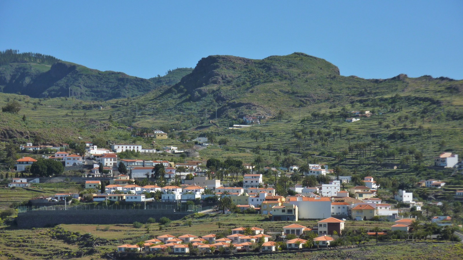 Begünstigt durch die Lage mit 830 m über dem Meeresspiegel - und die daraus resultierende erhöhte Feuchtigkeit - war die Region bei Alajeró eines der bedeutendsten landschaftlichen Zentren der Insel. Durch das historische Zentrum mit seinem Kontrast zwischen traditioneller Architektur und modernen Gebäuden wandern wir zu einem Aussichtsberg, der Montaña del Calvario mit ihrer Ermita de San Isidro Labrador, von wo wir eine atemberaubende Aussicht genießen. Danach steigen wir zu einem kleinen Stausee ab, um in einer Schleife durch die sanften Hügelketten auf einem wunderschön angelegten Camino zurück zum Ausgangspunkt zu gelangen.