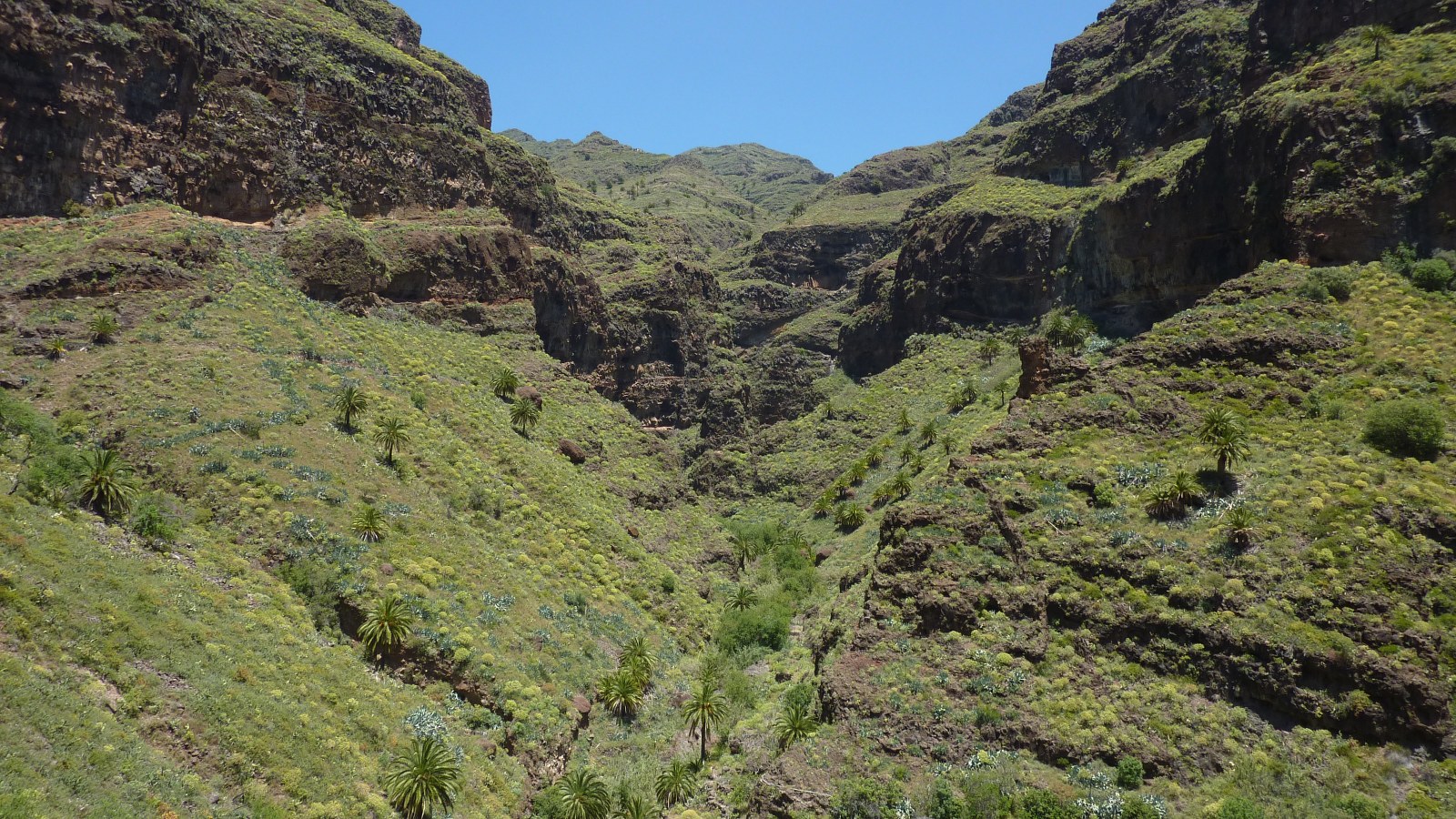 Das Barranco de Guarimiar ist ein wunderschönes, einsam gelegenes Tal im sonnigen Süden der Insel und zählt zu den beeindruckendsten Schluchtausläufen auf La Gomera. Die artenreiche Vegetation sowie vielfarbige Erosionsschichten machen diesen herrlichen Panoramaweg mit einem imposanten Steilabstieg längs eines 150 Meter hohen Wasserfalls zu einem außergewöhnlichen Erlebnis. Vier Kilometer lang schlängelt sich das Barranco de Guarimiar von Imada, bis es sich mit dem Barranco de Santiago vereinigt. Dabei werden 650 m Höhenunterschied bewältigt. Wir begleiten das Barranco auf einer Länge von 3 km, bevor wir auf einem architektonisch genial angelegten Camino den Aufstieg Richtung Targa und zurück zum Ausgangspunkt in Angriff nehmen.