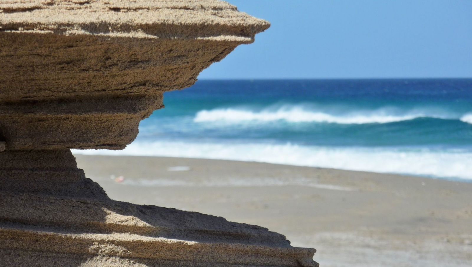 Ohne Frage, die Anfahrt mit dem Pkw hat es in sich. Aber die Belohnung folgt zugleich, ein Strandtag in der absoluten Einsamkeit der Westküste der Jandia-Halbinsel. Über 1,5 km Länge erstreckt sich der feine, hellbraune Sandstrand unterhalb der imposanten, bis zu 800 m hoch aufragenden Felsformationen – den höchsten Erhebungen der Insel. An 80 % aller Tage bläst der Passatwind und befördert die milde Seeluft in die Atemwege. Ein weiteres besonderes Naturschauspiel sind die 36 m hohe, erstarrte Felssäule des Roque de Moro, die vielen Sandsteinobjekte und die Intarsien auf den Felsen. Eine Entdeckungsreise für die ganze Familie.
