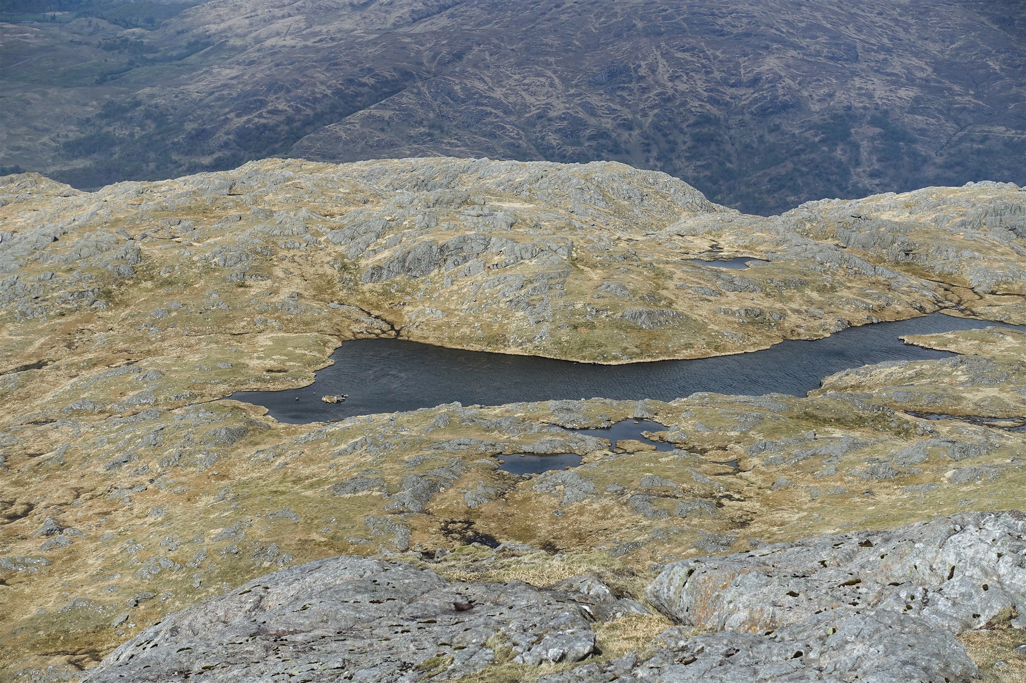 Nachdem der steilste Wegabschnitt geschafft ist, erreichen wir eine Hochebene und ein 04 See an der Einsattelung (734 m). Über Grasflächen und im Slalom durch Felsen erfolgt der finale Aufstieg.