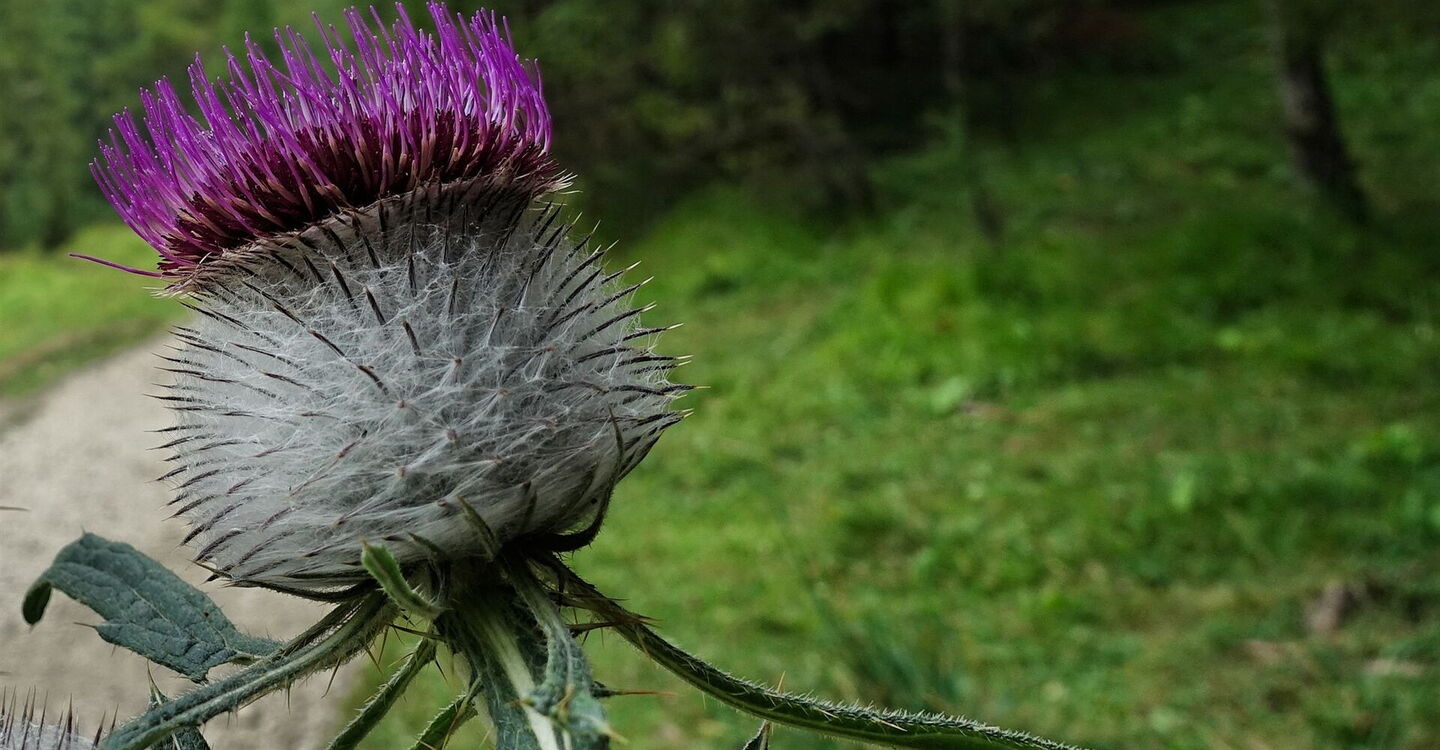 Vom 01 Berggasthof Plätzwiese (2.000 m) folgen wir in südlicher Richtung dem Wanderweg 18, es geht über Almwiesen Richtung Gemärk. Halb rechts von uns erhebt sich die 3.140 m hohe Croda Rossa (Hohe Gaisl). Hinter einer einzelnen Hütte gabelt sich der Weg und wir nehmen weiterhin den Wanderweg 18, es geht über eine kleine Brücke und auf einem Pfad weiter. Wir steigen durch das Knappenfußtal ab und gehen bei der Weggabelung auf der Wegnummer 18 a Richtung Autobus. Als Nächstes queren wir ein weiteres Trockenflussbett nach halb rechts, um auf der gegenüberliegenden Uferseite auf den weiterführenden Pfad zu gelangen.