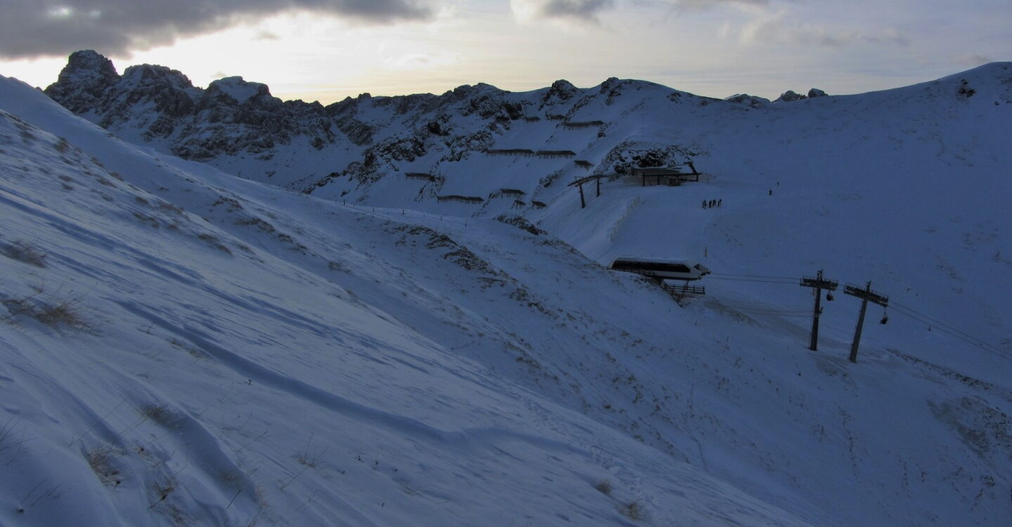 Kurzer Aufstieg und einfache Orientierung. Bei wenig Schnee ist der Wanderweg im unteren Teil nicht zu befahren. Die Abfahrt führt über einen Nordosthang. Folgende Ausrüstung wird empfohlen: Produkte für alpine Sicherheit im Schnee, Tourenski und Skitourenhelm. Es gibt verschiedene Restaurants zur Einkehr im Skigebiet. Beste Jahreszeit: Januar bis April. Uns erwarten kurze Stücke mit bis zu 30° Hangneigung.