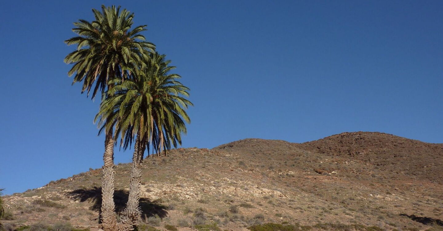Definitiv eine der schönsten Wanderungen im mittleren Westen Fuerteventuras und dazu noch eine TOP-Einkehrmöglichkeit mit der Casa de la Naturaleza. Nach der Besteigung des zehnthöchsten Berges der Insel folgt eine spannende Wanderung durch das Barranco de la Madre del Agua. Vereinzelt plätschern Quellen, kleinere Gumpen werden umlaufen, weitere kleine Flüsse nähren den Hauptstrom – dabei fräst sich der Fluss immer tiefer in seine Umgebung. Es ist eines der wenigen Barrancos auf der Insel, die ganzjährig Wasser führen. An seiner Mündung erlebt man wie in einer Oase zwitschernde Vögel zwischen Palmen, Schilf und Tümpeln. Und dann führt der Weg noch vorbei an einer Wallfahrtskirche, umgeben von mächtigen Basaltfelsen.