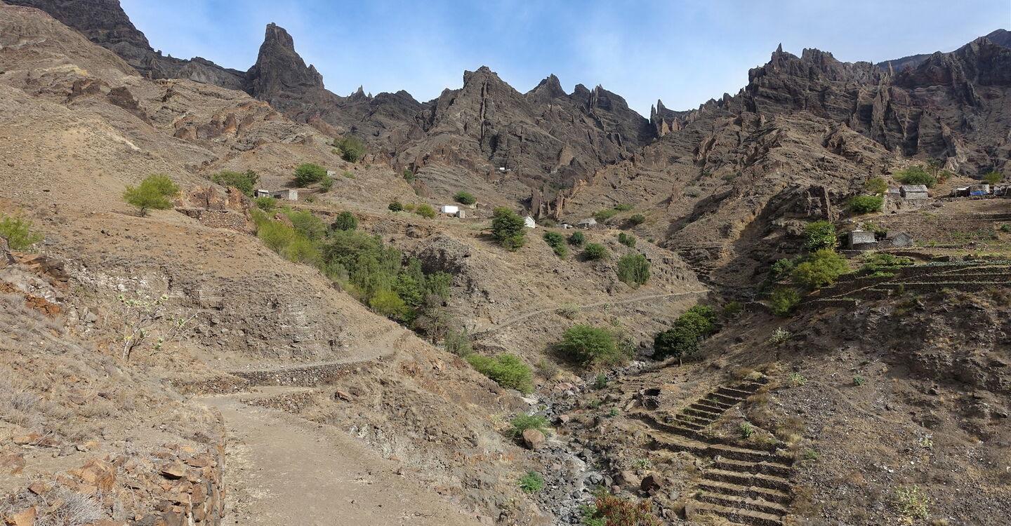 Die einmalige Sehenswürdigkeit auf dieser Tour sind die Spaltenfüllungen entlang des Aufstiegs, die auf Portugiesisch Filöes heißen. Es sind Füllungen aus Magma, die sich während des Vulkanaufbaus bilden. Sie entstehen, wenn Lava zur Oberfläche aufsteigt und entlang von Schwachzonen in das Vulkangebäude eindringt und dort erstarrt. So sehen wir Magmafüllungen mit bis zu 40 m Längsausdehnung und ca. 1 m Breite, die senkrecht zum Nebengestein stehen. Durch Erosion werden diese inneren Strukturen freigelegt, es bleiben die freistehenden Wände. Erst wenn man davor steht, kann man erkennen, wie groß und bezaubernd dieses Naturschauspiel in Wirklichkeit ist. Die Tour führt durch eine immer schmaler werdende Schlucht, die man durch einen spektakulären Felsdurchbruch verlässt, um danach zu einem Bergdorf abzusteigen. Diese kurze Wanderung ist ideal für all diejenigen, die ohne große Anstrengungen eine der schönsten Regionen des trockenen Teils der Insel entdecken möchten.