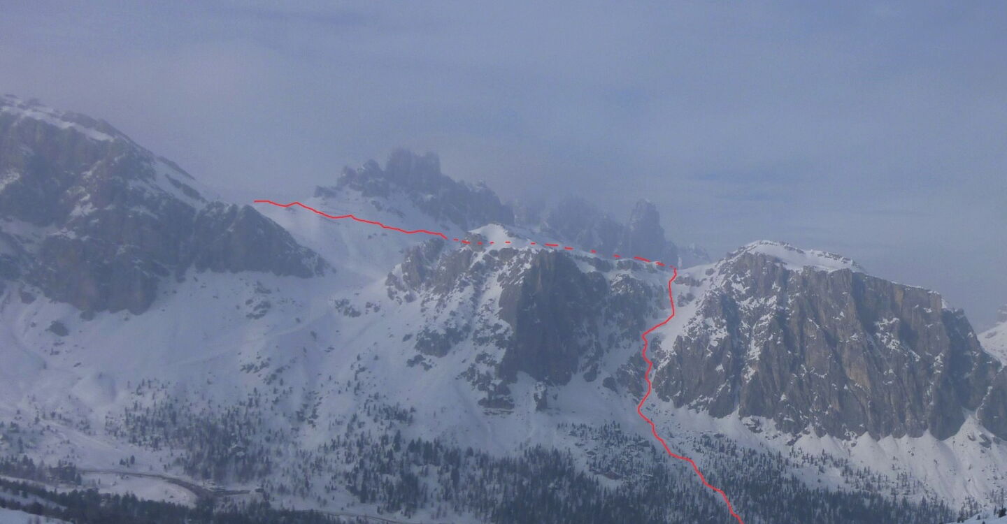 Der 1956 durch die Olympischen Winterspiele bekannt gewordene Ort Cortina d'Ampezzo liegt in traumhafter Landschaft, umgeben von den Gipfeln der Tofana di Mezzo 3243 m, Monte Cristallo 3218 m und Punta Sorapis 3205 m. Bisher gehört die Dolomitengemeinde zur venetischen Provinz Belluno und nicht zu Südtirol, trotzdem wird auch hier Ladinsch gesprochen. Ohne Frage in Cortina d'Ampezzo trifft man Gäste aus der ganzen Welt und besonders auf der Flaniermeile im Dorfkern. Die drei Skigebiete Faloria Cristallo Mietres, Tofan Ra Valles und Lagazuoi 4 Torri, mit 38 Bergbahnen und 120 Pistenkilometer, sind absolute Spitzenklasse. Wir sind aber gekommen um die Variantenabfahrten in dieser Region zu erkunden.