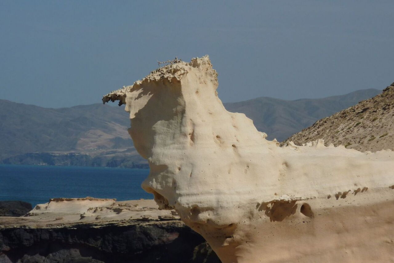 Eine extrem beeindruckende Wanderung durch das Naturschutzgebiet Jandia, die stark an die Durchquerung einer Wüste erinnert. Dabei läuft man auf dem Hinweg immer entlang der schmalsten Stelle von Fuerteventura, die hier nur einen Durchmesser von 4,5 km hat. Steigt man zwischen den Klippen zur Westküste herunter, so lässt sich miterleben, wie die gewaltigen, meterhohen Wellen mit tosendem Lärm an die Küste prallen – ein Erlebnis, das wir niemals vergessen werden. Auch die vom starken Passatwind geformten Sandsteinobjekte bieten unzählige Fotomotive. Ein besonders kraftvoller Ort – die Westküste von Fuerteventura.