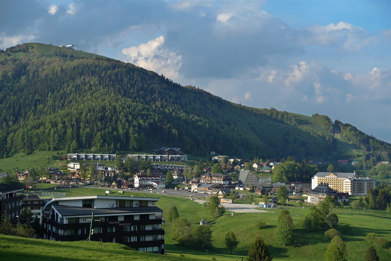 Vom großen Parkplatz in 01 Donovaly (973 m) passieren wir die Brücke über die Bundesstraße und marschieren auf der nachfolgenden Straße in südwestliche Richtung. Auf der Straße, oberhalb mehrerer Lifte, erreichen wir die Ortschaft Polianky. Direkt hinter der 1894 gebauten Kapelle gehen wir bei der Weggabelung halb links, verlassen die Zivilisation und tauchen ein in die Natur.
