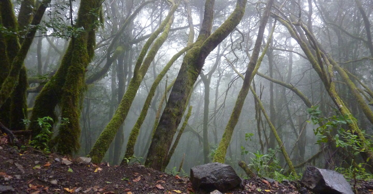 Im Hochtal von El Cedro fangen sich die ankommenden Passatwolken und geben ihre mitgebrachte Feuchtigkeit an den immergrünen Lorbeerwald ab. Der erste Teil der Wanderung führt durch ein Chaos von Stämmen, Blättern und Hängemoosen mit ihren langen Bärten, die sich Richtung Sonne strecken, um möglichst viel Licht einzufangen. Bei der Durchquerung eines alten, 575 m langen Wasserstollens kommt Spannung auf. Konstruktiv bedingt hängt der Tunnel in der Mitte ein wenig, was dazu führt, dass an dieser Stelle in der Regel 20-30 cm Wasser stehen - so kommt man nur nach langen Trockenperioden trockenen Fußes durch den Wasserstollen. Eine besondere Tour, die all unsere Sinne anspricht.