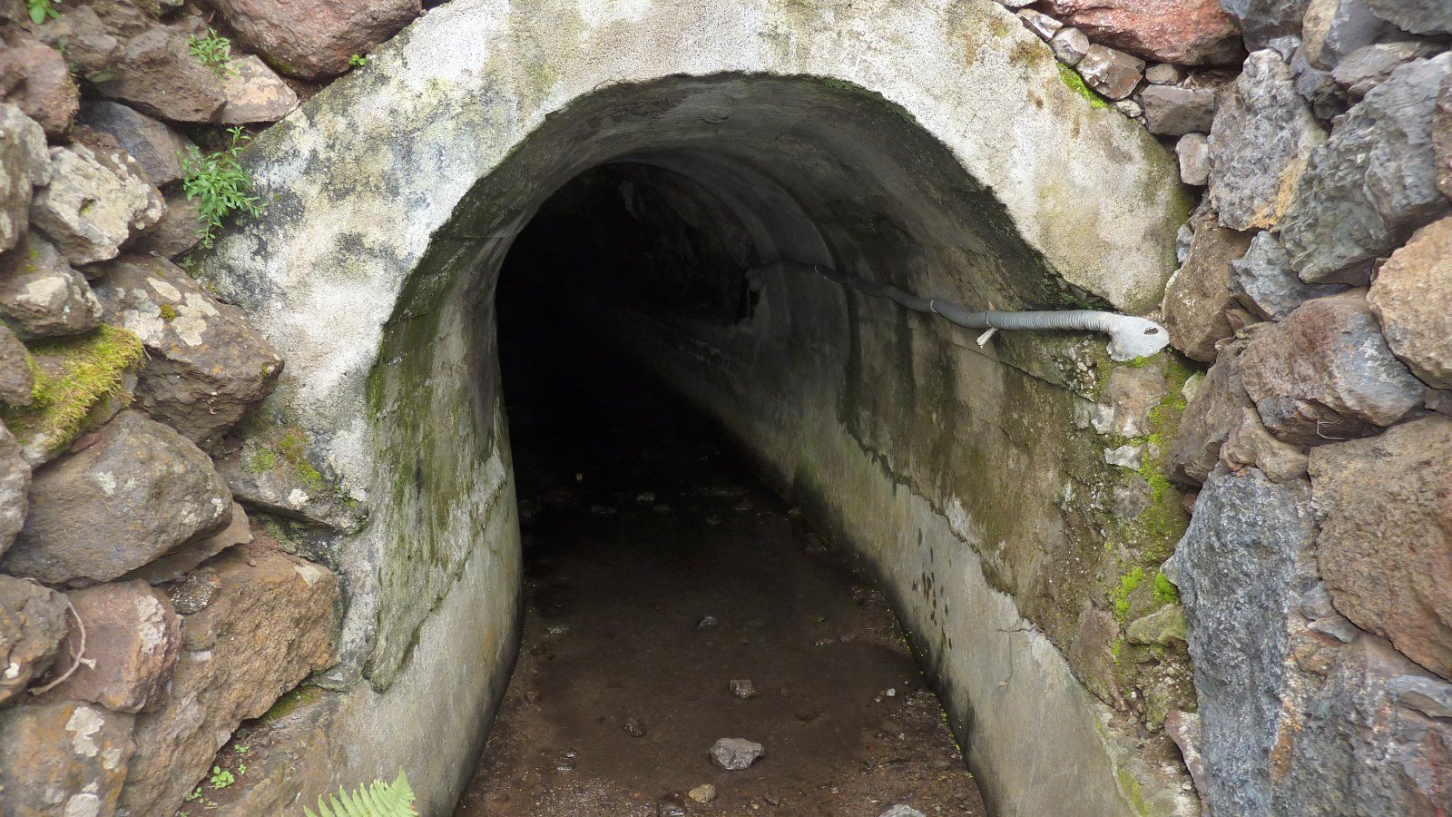 Bei der folgenden Weggabelung gehen wir links und erreichen nach einigen Metern den (05) Stollen (872 m). Technisch stellt die Durchquerung keinerlei Anforderungen. Lediglich der große Wanderer muss die 575 m in leicht gebückter Haltung gehen. Da es hier keinen Laufsteg gibt, muss das Wasser durchwatet werden! Als Regel gilt es zu beachten: Ist der Wasserstand am Eingang bereits höher als die Schuhoberkante, so sollte man von der Begehung absehen und die Variante über den Berg nehmen. Ansonsten gilt: Taschenlampe an und los geht's. Nach ca. 15 Minuten sichten wir einen zunehmend größer werdenden weißen Lichtkegel, den Tunnelausgang und Ausgangspunkt unserer Wanderung.