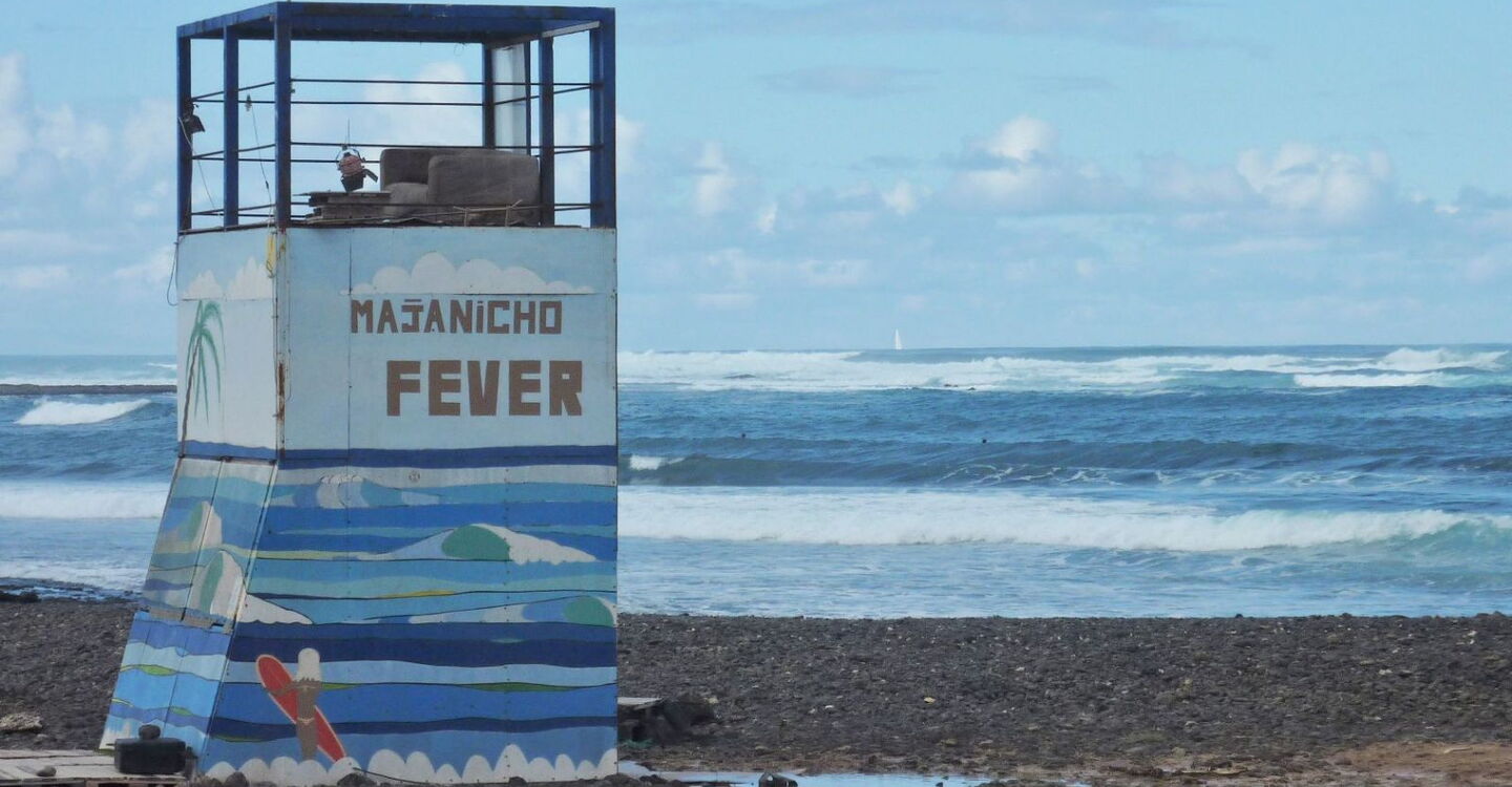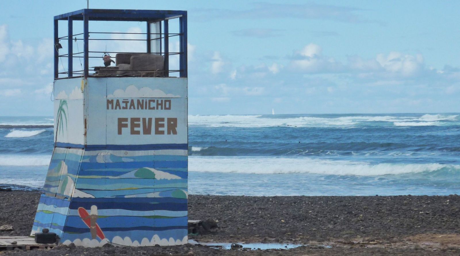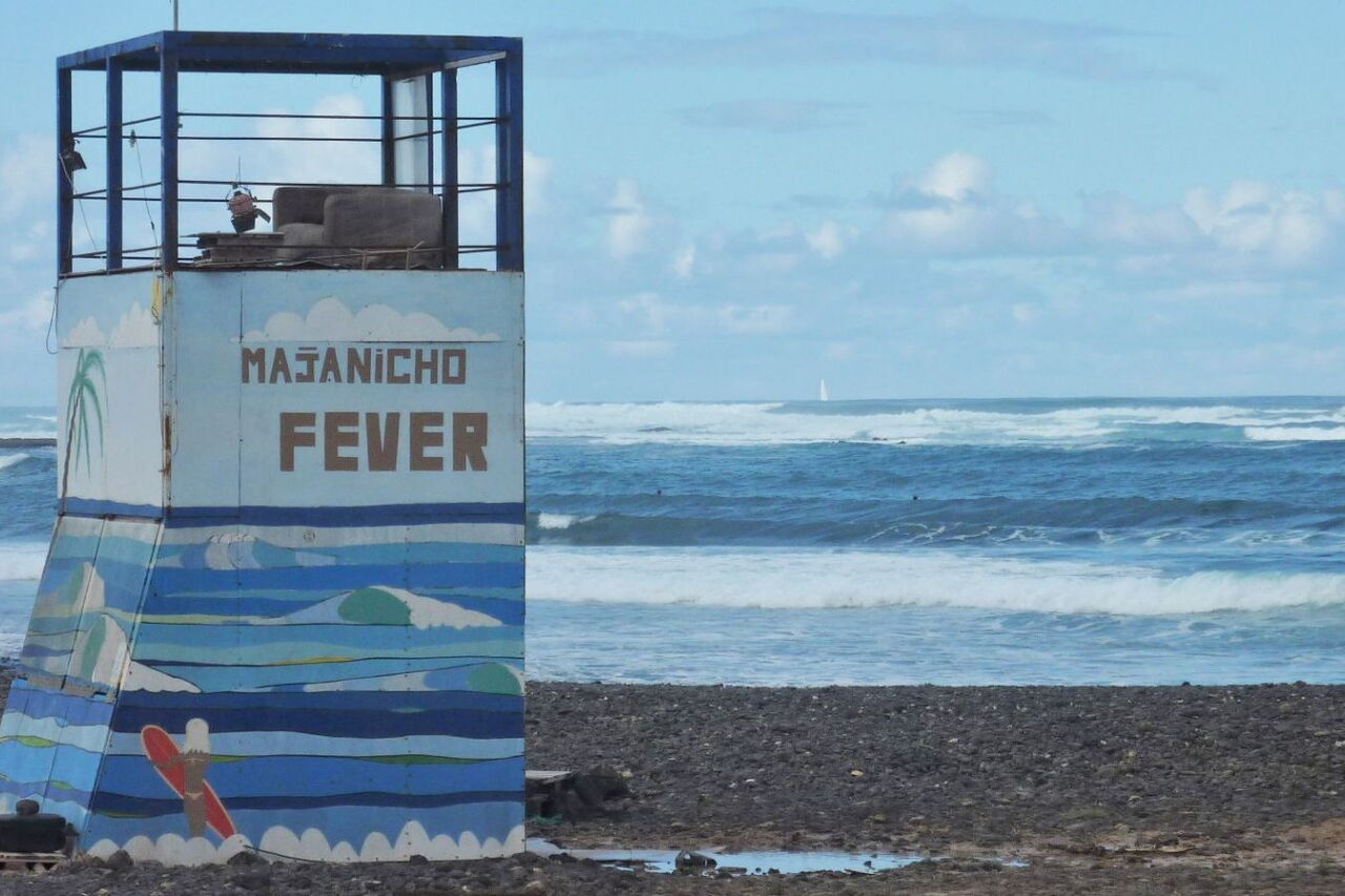 Nur kurz später treffen wir auf das Fischerdörfchen (04) Majanicho, ein Wellenreitertreff (16 m) und einer der besten Surfspots im Norden des Eilands. Die Region zwischen Corralejo und Cortillo wird auch als Northshore bezeichnet. Hier sind die sogenannten Reefbreaks angesiedelt, hohe Wellen, die an den Felsen der Küste zerschellen. Hier treffen sich vor allem fortgeschrittene Surfer. Als Beachbreaks werden dagegen die Wellen bezeichnet, die auf den Strand treffen.
