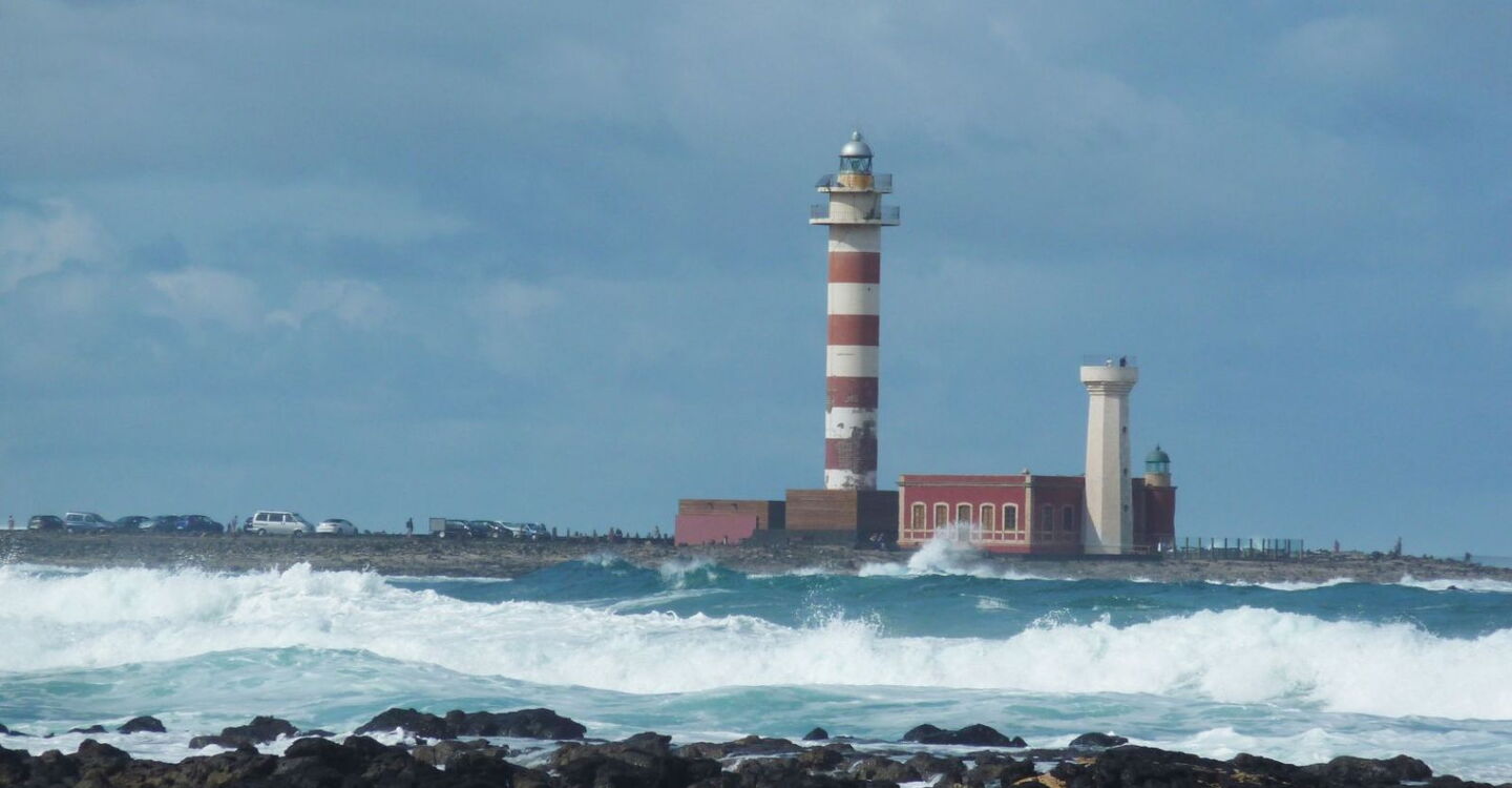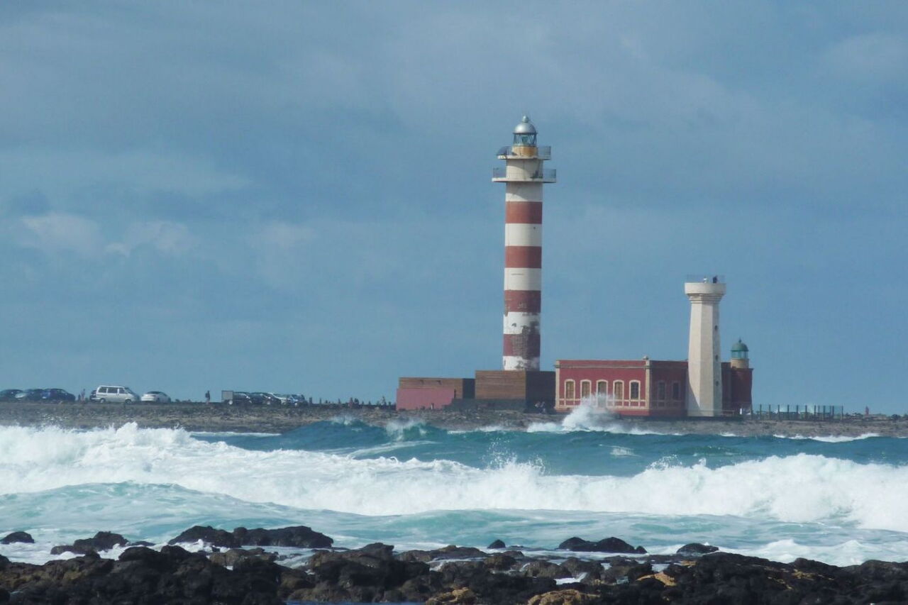 In der Ferne sehen wir den 1897 erbauten Leuchtturm El Toston. Wir umlaufen weiträumig die Caleta del Marrajo, um nach weiteren 80 m, rechts über die Zufahrtsstraße zum Leuchtturm, direkt auf eine alte Zisterne zuzugehen und dort unseren Weg entlang der Küste – nun in östliche Richtung – fortzusetzen. Wir gehen auf der Piste oder schmalen Pfaden entlang des Küstenstreifens und erreichen die (02) Playa Aguda & Playa Maria Diaz (18 m).