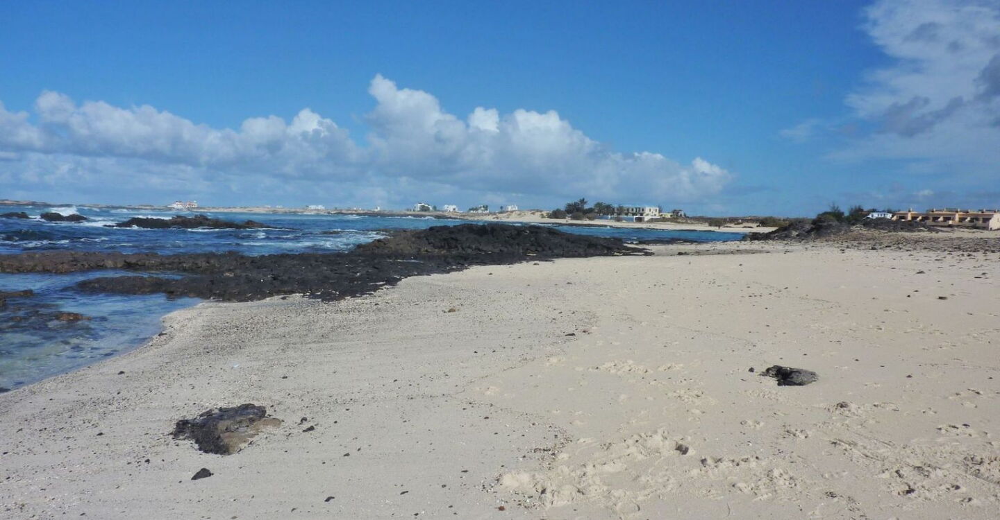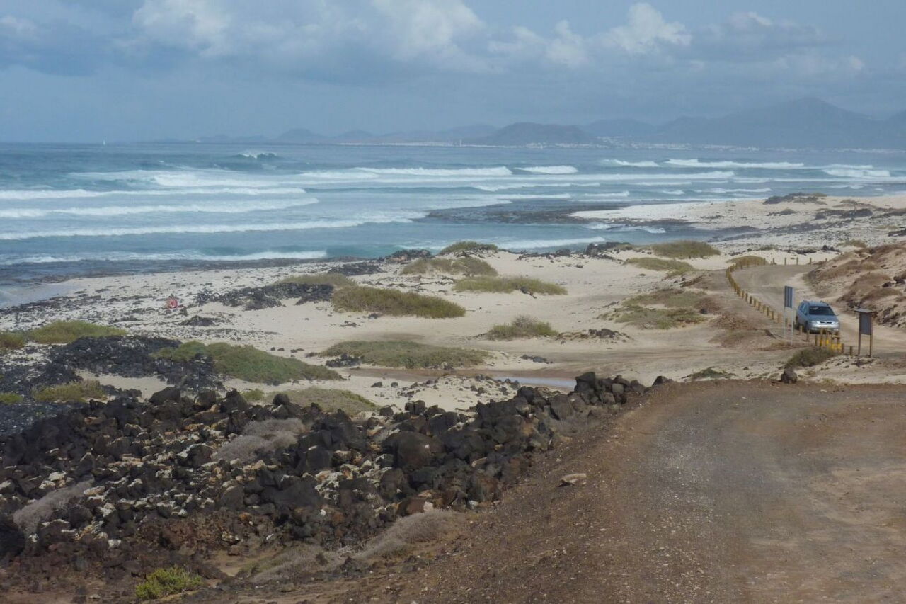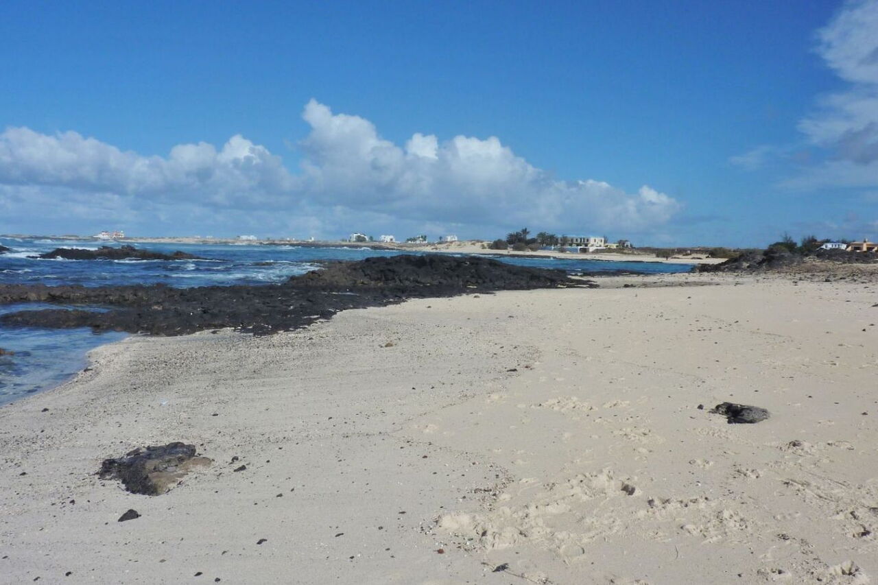 Vom (01) Start El Cotillo (27 m) gehen wir auf der Hauptstraße in westliche Richtung bis in das Ortszentrum und dort direkt auf einem der vielen Pfade entlang der Küste – nun in nördliche Richtung. Vorbei führt der Weg an einer Reihe wunderschöner Sandstrände (Playa Marfolín, Playa Islote und Playa Beatriz) mit weißem Sand. Bei Ebbe ergeben sich hier perfekte Badebuchten. Entgegen der Meinung, der weiße Sand stamme aus der Sahara, besteht der Sand der Strände aus Körnern organischen Ursprungs, wie von Muschelresten oder Restmaterialien kalkhaltiger Algen. Im Zusammenspiel mit dem Wind bildeten sich kleine Dünenfelder, wie wir sie entlang der Küste bei El Cotillo bewundern können. Die Wanderung führt direkt am Strand entlang. Es wechseln immer wieder sandige Buchten mit felsigen Abschnitten.