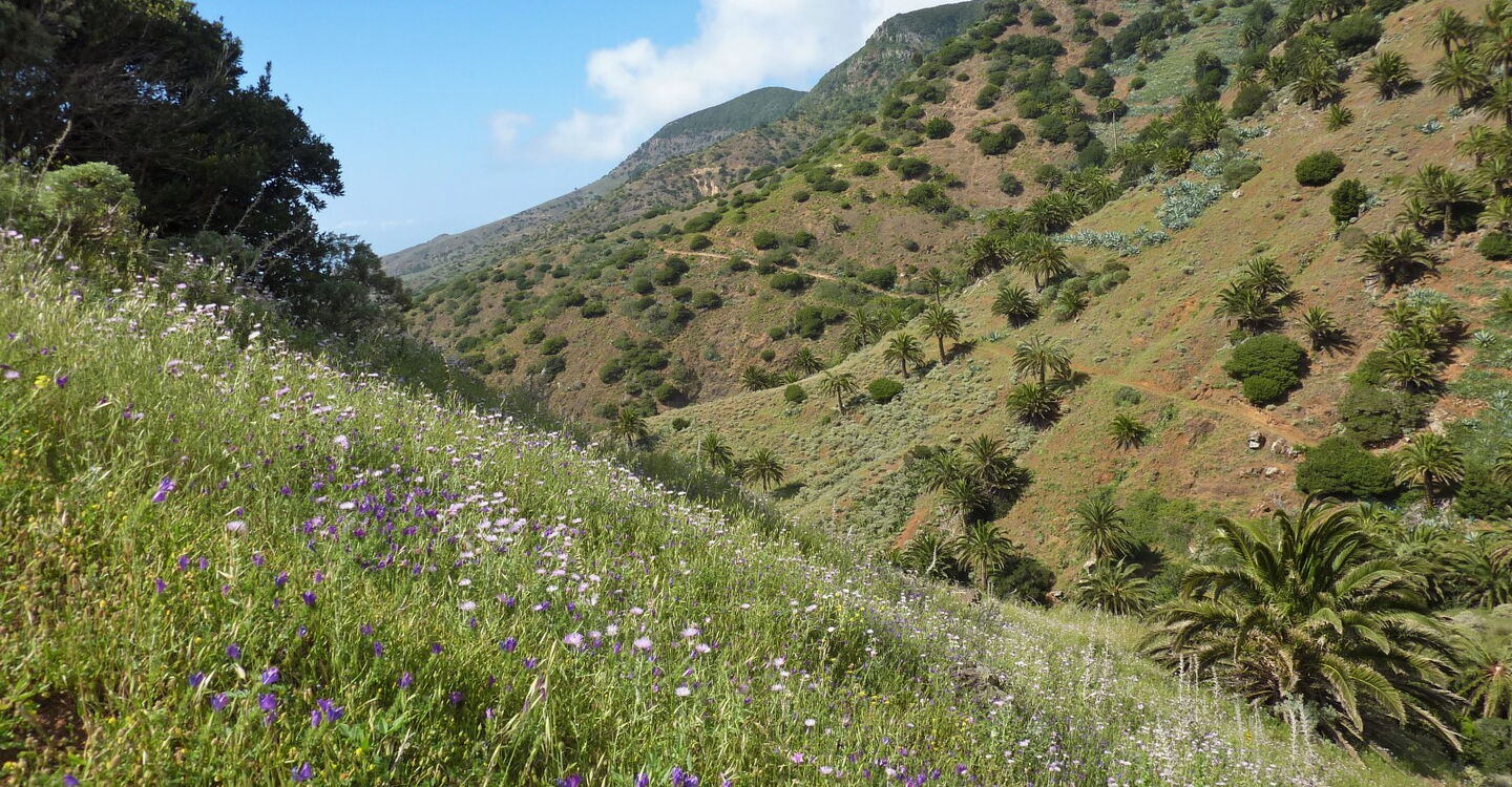 Die Region bei Alojera ist eine der schönsten, ruhigsten und sonnigsten auf La Gomera. Nur wenige Touristen verirren sich in den Nordwesten der Insel. Hier wird der berühmte Palmensaft - Miel de Palma - hergestellt. Dementsprechend führt der größte Teil der Wanderung durch prachtvolle Palmenhaine, bis wir auf einem wunderschönen Höhenweg den Ausgangspunkt erreichen. Wanderschuhe schnüren und auf geht's.