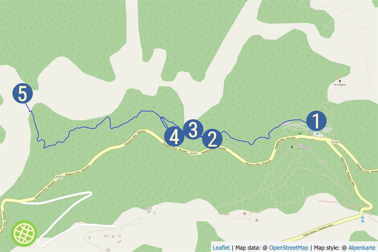 Leicht begehbare Wege mit sanftem Gefälle. Kennzeichnung: Steinmännchen. Art des Weges: Pfade und gepflasterte Wege. Ausrüstungsempfehlung: keine. Einkehr: Snacks im Hotel Elafos (Hirsch) und in den Sommermonaten von 10:00-22:00 Uhr im Restaurant Elafaki. Beste Jahreszeit für diese Tour: April bis Oktober. Tipp: Am Anfang und am Ende der Saison kann es am Berg empfindlich kühl werden.