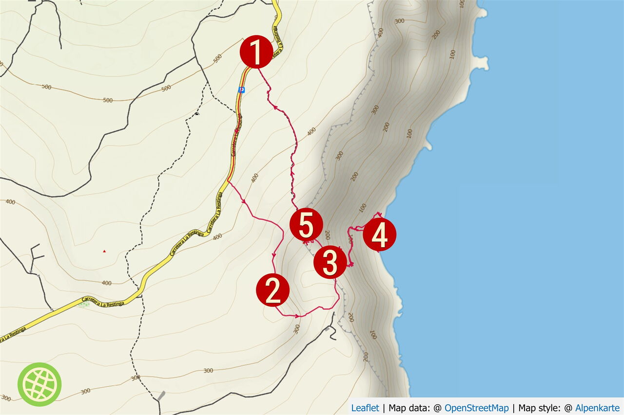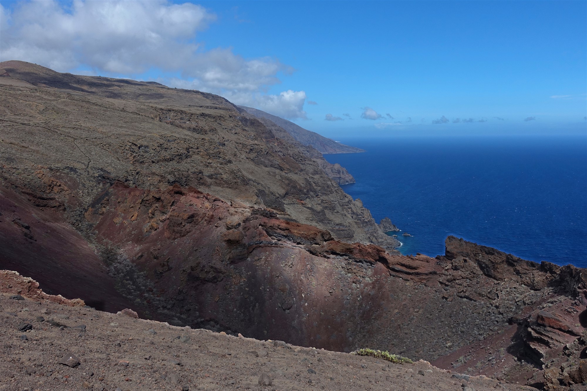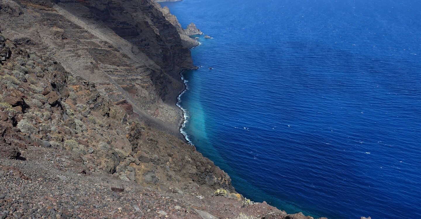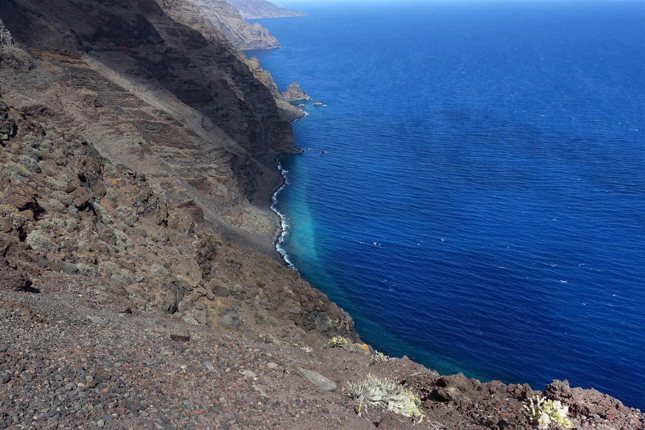 Die Ostküste von El Hierro, zwischen Las Playas und La Restinga, ist geprägt von mächtigen Felswänden, die 800 m hoch aus dem Meer aufragen – auf den ersten Blick definitiv nicht zum Wandern geeignet. Jedoch führt ein spektakulärer Pfad durch diese Felswände. Er wurde angelegt, um eine Wasserleitung und eine Pumpstation zu bauen. Inzwischen hat sich die Natur diesen Pfad größtenteils wieder zurückgeholt, deshalb ist der Abstieg nichts für schwache Nerven – Trittsicherheit und Schwindelfreiheit sind auf dieser Wanderung Bedingung. Was bleibt, ist das Hochgefühl, eine derartige Herausforderung gemeistert zu haben.