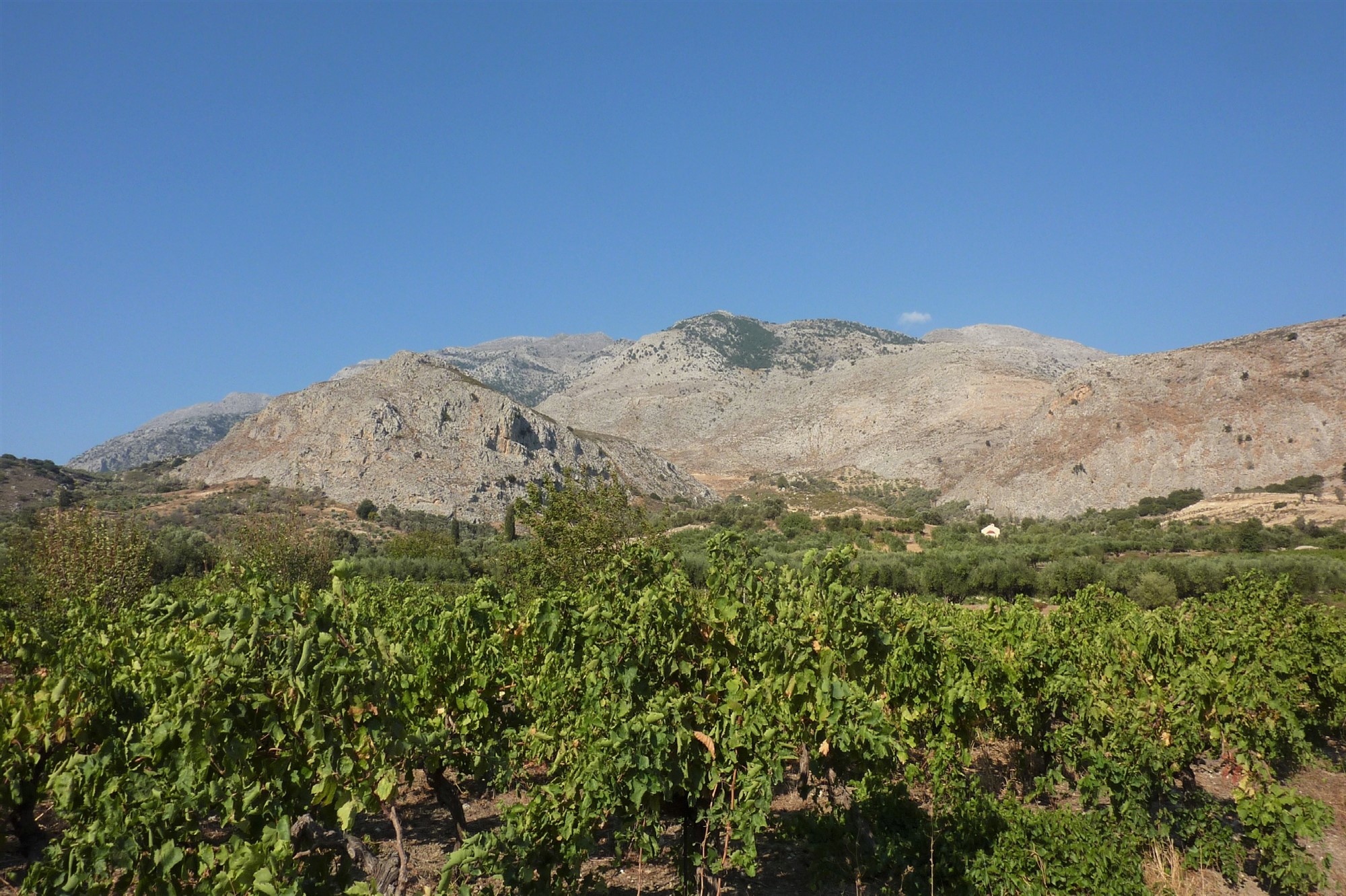 Von der Unterkunft in 01 Kato Asites (552 m) gehen wir auf der bergab führenden Asphaltstraße bei der ersten Möglichkeit rechts und anschließend halb rechts – direkt hinter der Kirche – weiter auf einer betonierten Piste. Dort, wo diese Piste eine Rechtskehre macht, gehen wir geradeaus auf der Schotterpiste weiter.