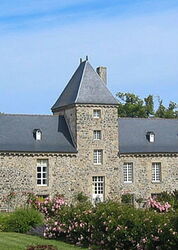 Der Pfad mündet in einen breiten Weg. Links geht es zu einer Straße herunter, wir gehen aber rechts über die Felder, bis wir die im 18. Jahrhundert errichtete 02 Chapelle Saint-Samson (80 m) erreichen. Anschließend gehen wir links auf der Straße weiter, verlassen diese nach halb rechts und kommen an einem Gedenkstein vorbei. Nun, auf einer Piste überqueren wir die nachfolgende Straße und gehen an einer Steinmauer entlang, nachfolgend durch Weide- und Anbauflächen. Bei der Norfolktanne und einer Palme queren wir die beiden darauffolgenden Straßen und gehen anschließend geradeaus auf der Piste weiter. Auf der nachfolgenden Asphaltstraße angekommen, gehen wir geradeaus weiter durch kleinen Wald, um dann in der Rechtskehre – nach der Linkskehre der Straße – nach halb links abzubiegen. Wir gehen nun parallel zu einem kleinen Bachlauf.