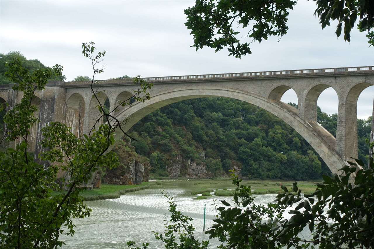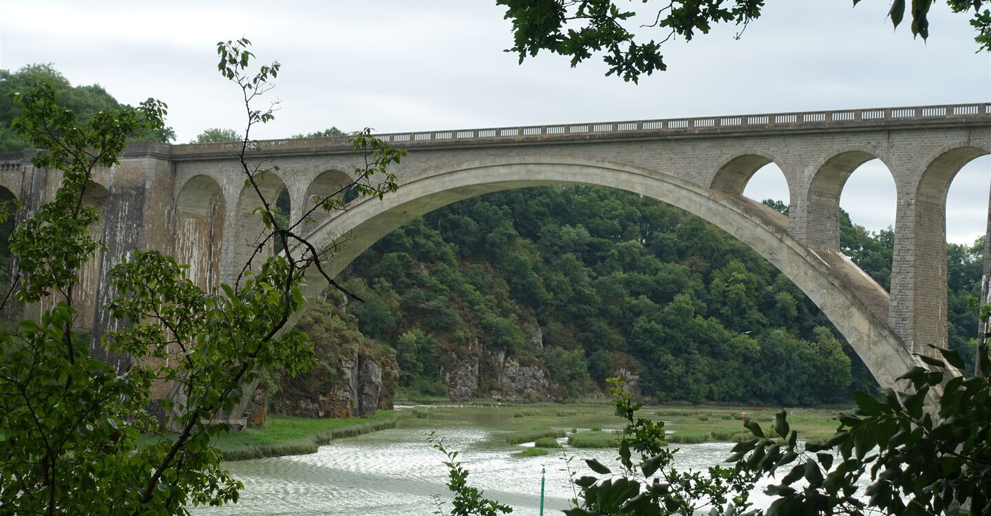 Nach kurzem Aufstieg queren wir unterhalb des Manoir du Châtelier-Guitrel à Saint-Samson-sur-Rance – leider gibt es keine Stelle, an der man das Herrenhaus sehen kann. Wir gehen auf die große 05 Eisenbahnbrücke (30 m) zu, vor der wir rechts gehen. Weiter geht es entlang des Bahndamms bis zur D12, um dort rechts zu gehen und so zum Parkplatz zu gelangen.