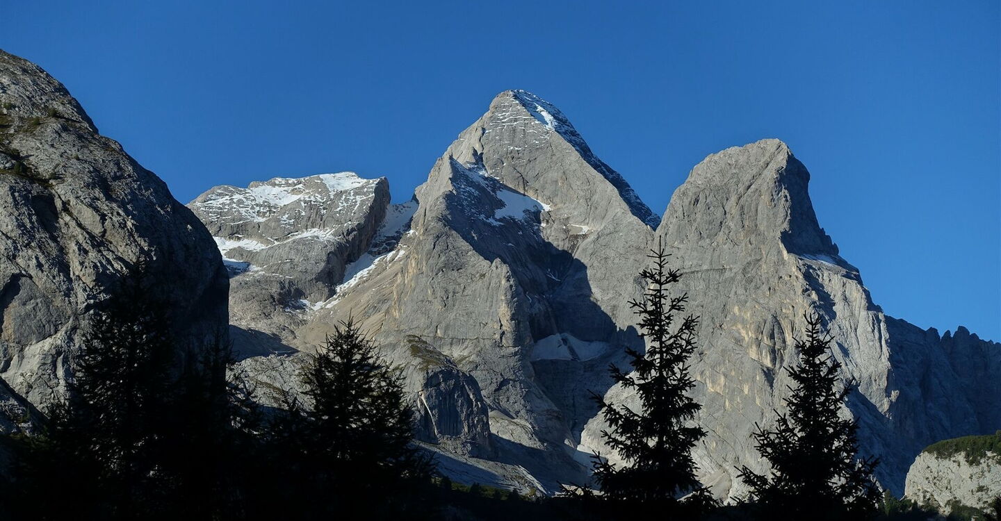 Schwierigkeitsgrad Blau (Tour 38) oder Schwarz (Tour 53), das ist hier die Frage! Bei zu erwartendem schlechten Wetter oder fehlender Klettersteigerfahrung ist es ratsam, sich gegen die Tour 53 über die 2.896 m hohe Marmolata-Scharte zu entscheiden. Stattdessen wählt man die Tour 38, die Etappe 9 von 21. Diese führt durch eine sich ständig verändernde Landschaft und zwei traumhaft gelegene Täler. Dabei eröffnen sich immer wieder umwerfende Blicke auf die omnipräsente Marmolata mit ihren steilen Wänden und mächtigen Bergspitzen.