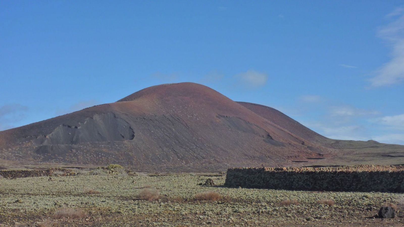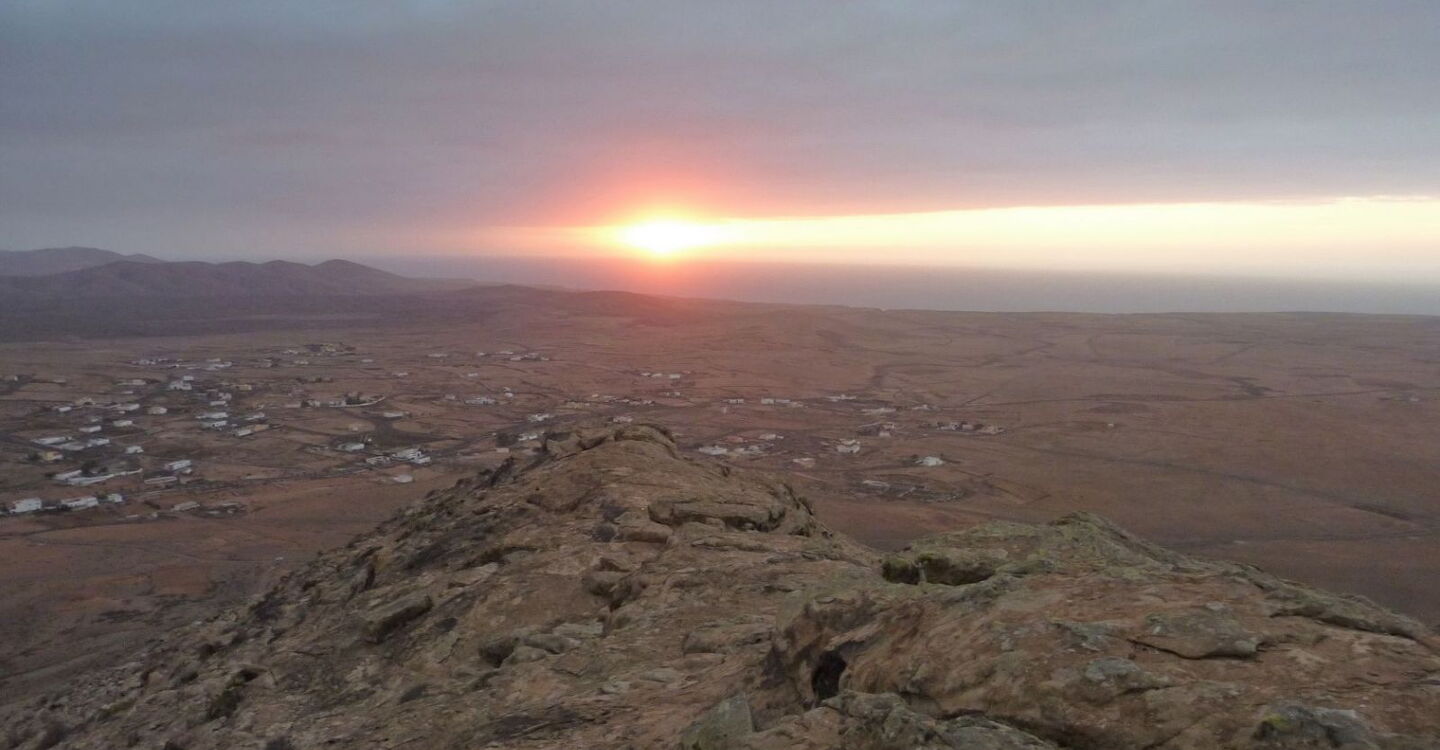 Bei Vulkanausbrüchen in dieser Region öffnete sich typischerweise die Erde in Längsrichtung und es bildete sich eine Reihe von Vulkanen. Das erste Teilstück der Wanderung verläuft parallel zu solch einer Vulkanreihe, bis wir von einer Aussichtsplattform direkt in den Vulkankessel der Calderon Hondo schauen können. Wer möchte, kann den Vulkan auf seinem Grat umrunden. Außerdem gibt es die Gelegenheit, Trockensteinbauten zu erkunden, wie sie von den Ureinwohnern Fuerteventuras gebaut wurden.