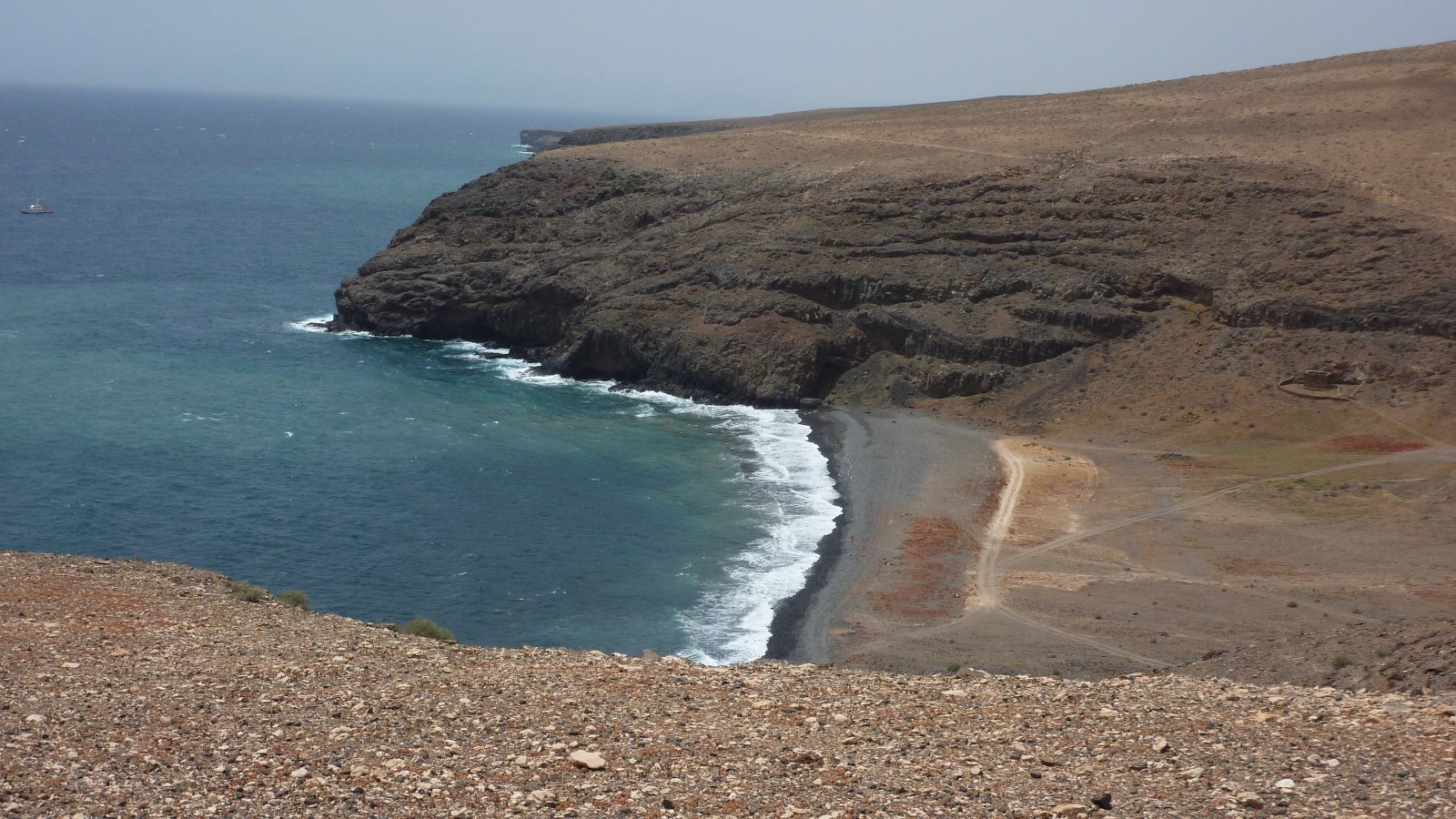 Der Weg führt vorbei an einer Ruine, einem Rasthäuschen sowie einem Brunnen, der früher Süßwasser führte. Wir erreichen den schwarzen Kiesstrand (03) Playa del Pozo (1 m). Nach einer Badepause gehen wir auf einem der zahlreichen Pfade am nördlichen Ende der Playa im Zickzack steil an der vor uns liegenden Klippe bergauf.