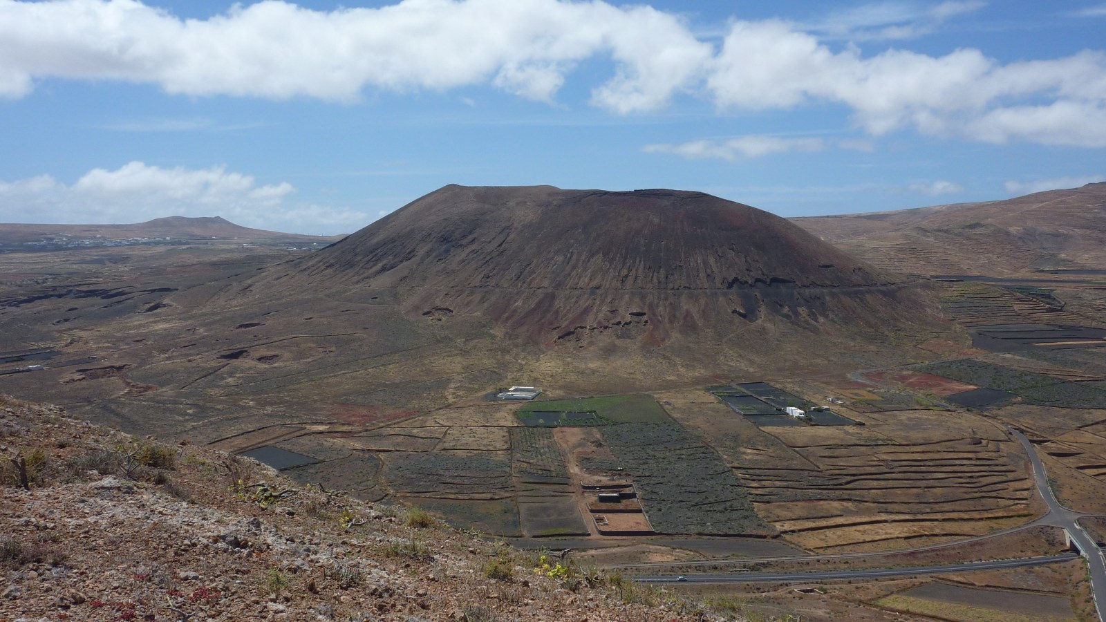 Der Ausgangspunkt der Wanderung ist das Dorf Guatiza im Nordosten von Lanzarote. Südlich von Guatiza liegen die beiden Hausvulkane Montaña Tinamala mit 330 m und Montaña de Guenia (358 m). Der höhere der beiden ist unser heutiges Ziel. Wenn man möchte und mit dem Pkw angereist ist, kann man die gesamte Wegstrecke noch um 5 km reduzieren, indem man bis zum Wegpunkt (02) fährt. Damit reduzieren sich die Höhenmeter auf 160. Trotz seiner geringen absoluten Höhe genießt man vom Gipfel aus eine wunderschöne Rundsicht.