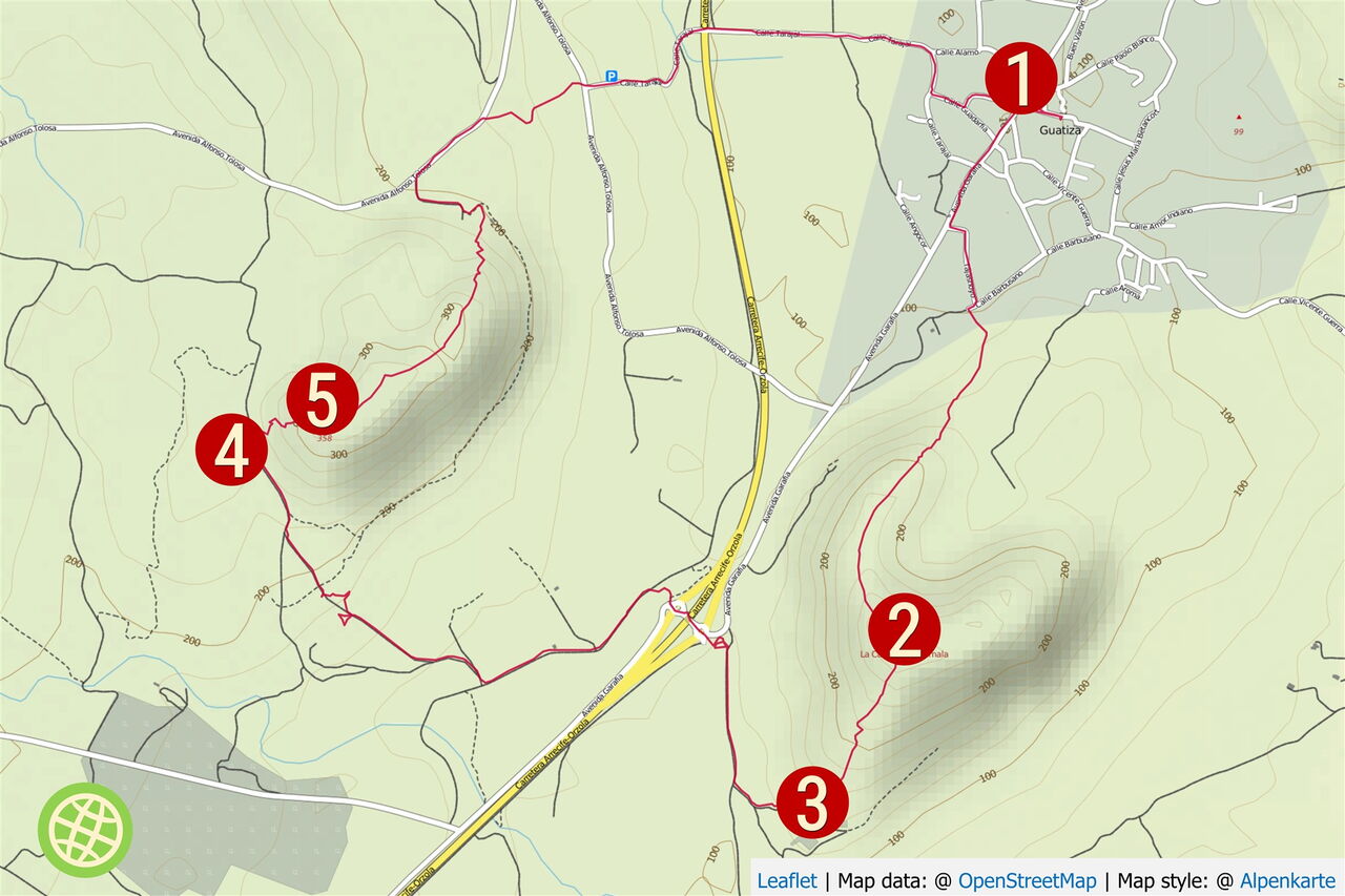 Die Besteigung der Montaña de Guenia ist komplett weglos und erfordert einen guten Orientierungssinn. Dazu ist es sehr steil und rutschig. Dieser Streckenabschnitt ist eigentlich schwer = schwarz, aber da der Rest der Wanderung einfach ist, ist der Schwierigkeitsgrad der Tour als mittel = rot klassifiziert worden. Wegbeschaffenheit: 30 % Asphaltstraße, 40 % Schotterpiste und 30 % Pfad. Ausrüstungsempfehlung: Wanderstöcke für die Besteigung der Montaña de Guenia. Einkehr: Auf der Tour keine, aber in Guatiza befindet sich das Restaurant Centro Sociocultural. Diese Wanderung kann zu jeder Jahreszeit unternommen werden. Tipp: Ergänzen Sie die Wanderung mit einer kulturellen Sehenswürdigkeit, dem Besuch des Kakteengartens in Guatiza.