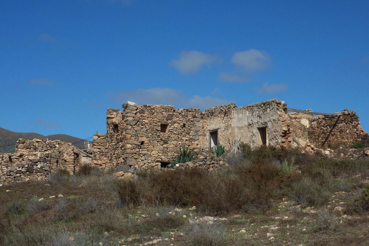 Am (01) Start und Ziel (242 m) gehen wir zunächst auf der Anfahrtsstraße 30 m zurück, um dann der Schotterpiste links herunter in südliche Richtung zu folgen. Vorbei geht es an rechts von uns liegenden Ruinen und weiter parallel zu einem links von uns liegenden Barranco. Bei der folgenden Weggabelung, 20 m vor einem Wasserauffangbecken, lassen wir den rechten Abzweiger liegen und bleiben auf dem Hauptweg. Wir erreichen ein Barranco. Rechts bei einem großen Stein führt eine größere Schotterstraße leicht bergauf, wir gehen jedoch links im Barranco weiter. Der Weg führt an einem weißen Haus vorbei und rechts vom Weg liegen viele Tomatenplantagen. Nach starken Regenfällen ist der folgende Wegabschnitt direkt im trockenen Flussbett schwer auszumachen.