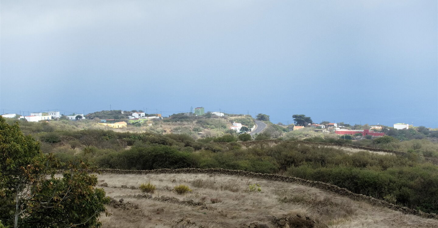 200 m vor einem weißen Haus mit einem grünen Dach zweigt rechts an einem kleinen Erdbeerbaum ein Pfad ab, der sich aber bereits nach einigen Metern verliert. An dieser (04) Schlüsselstelle (1029 m) gehen wir auf Ziegenfaden auf dem vor uns liegenden Bergrücken. An der Steinmauer gehen wir rechts vorbei und bei dem nachfolgenden Mauerdurchbruch links hindurch, um dann durch dichteres Gestrüpp und Kakteen Slalom zu laufen. Von der Anhöhe steigen wir auf rutschigem Untergrund zu einem Camino ab, um dort schließlich rechts bergauf zu gehen. Der Camino endet an einer Asphaltstraße. Nach 285 m auf der Asphaltstraße erreichen wir eine Anhöhe. Hier verlassen wir die Straße und gehen auf dem Pfad weiter.