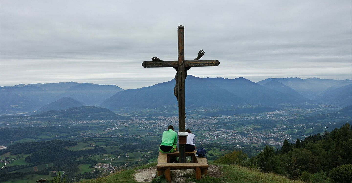 Die Hauptstraße am 01 Passo Croce d'Aune (1.011 m) verlassen wir in die Stichstraße links neben dem Albergo Croce d'Aune. Nach wenigen Metern kommen wir an dem Albergo Ristorante Al Camoscio vorbei. Am Ende der Straße gehen wir scharf rechts. Bei dem nachfolgenden Heiligenschrein verzweigt sich die Straße in drei Arme, wir gehen ganz rechts auf einem Schotterweg unterhalb von Häusern weiter. Eine scharf rechts abzweigende Piste ignorieren wir. Dort, wo der Wald lichter wird, verlassen wir den Schotterweg nach halb rechts und befinden uns nun auf einer Piste, die nach Pedavena Feltre ausgewiesen ist – der Wanderweg 801.