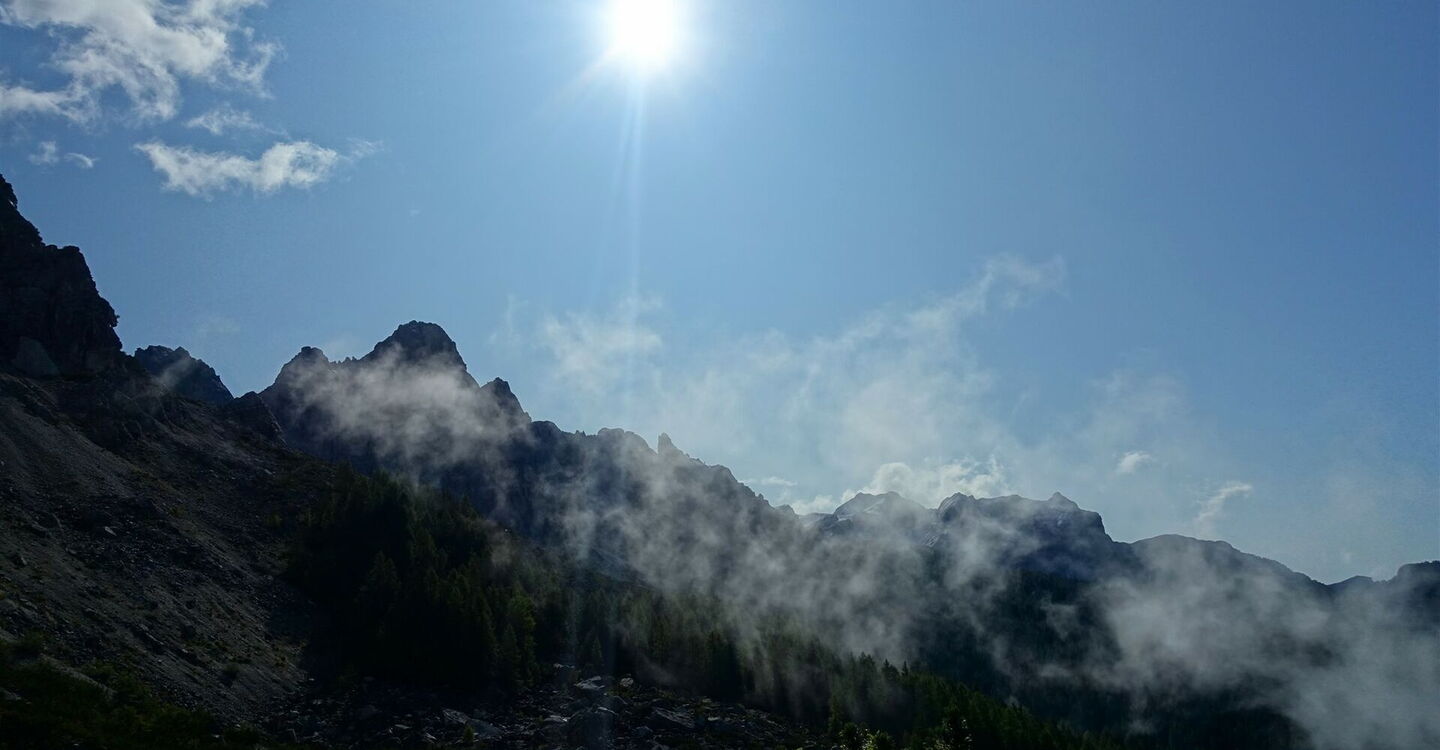 Zwischen Wiesen gelegen, erreichen wir dann die Casa del Moschesin (1.800 m) und einen Brunnen. Von dort gehen wir auf einem mit Latschenkiefern bewachsenen Berghang im Zickzack bergauf. Nach einem ca. 200 m langen und gerade verlaufenden Wegabschnitt erreichen wir den Scheitelpunkt (1.966 m) unserer heutigen Wanderung. Richtung Südosten ergibt sich ein wunderschöner Ausblick auf die drei Gipfel der Cima de Zità, die zur Talvenagruppe gehören. Nach kurzem Abstieg erreichen wir die 04 Forcella Moschesin (1.938 m).