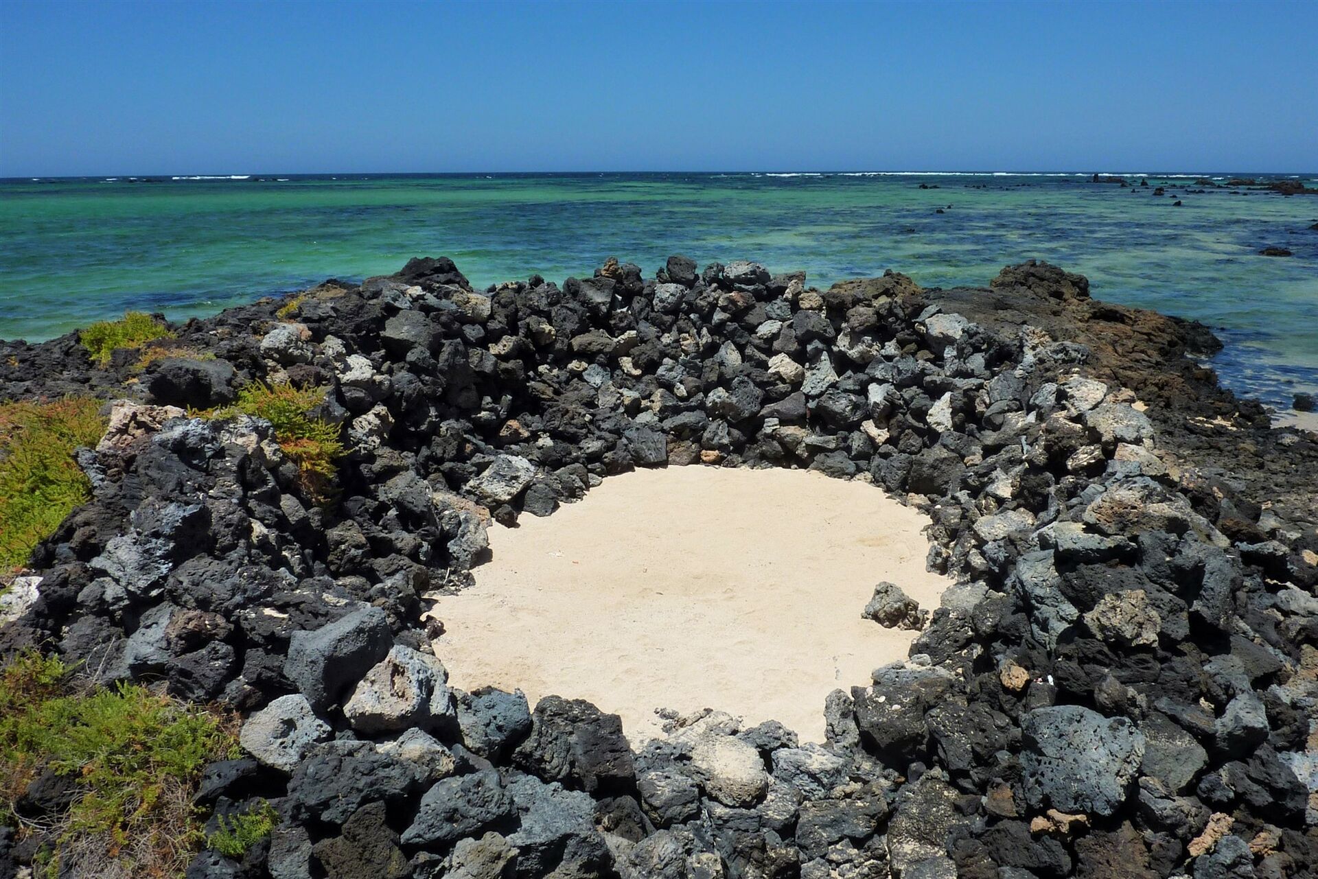Gleich links an der Lagune befinden sich einige imposante, große 04 Steinburgen 0 m, die Schutz vor dem Passatwind bieten.
