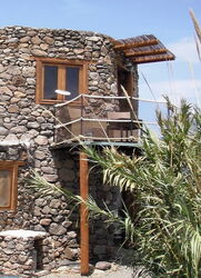 Wir sehen in 150 m Entfernung einen markanten Felsen, an dem wir links vorbeilaufen, um auf der folgenden Schotterpiste rechts zu gehen. Nach 50 m, bei einer Kreuzung, treffen wir auf die Reste eines (05) alten Handelsweges (48 m). Hier gehen wir links und erreichen nach 1,1 km Orzola und das verchromte Metallgeländer.