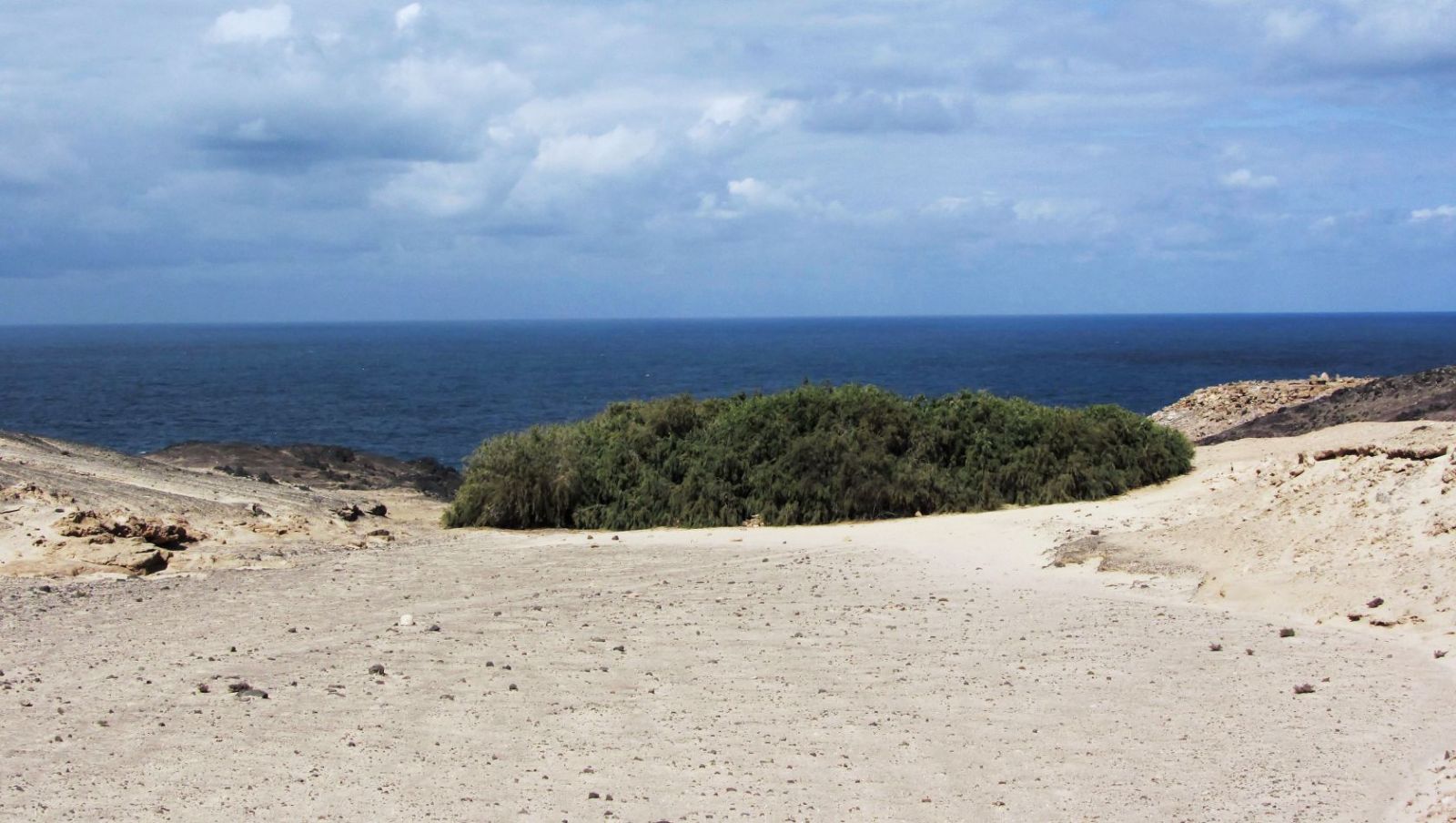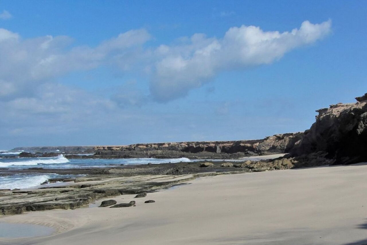 Diese Wanderung für Entdecker hat ihren Ausgangspunkt im Nichts, auf einer weiten kargen Ebene. Sie führt uns entlang des südlichsten Vulkans von Fuerteventura zu einem kleinen Tamariskenwald. Bei der nachfolgenden Bucht, der Caleta de la Madera, blickt man entlang der bizarren Felsküste. Vorbei führt der Wanderweg am kleinsten Leuchtturm von Europa bei der Punta Pesebre bis zum Ausgangspunkt, dem Playa de Ojos. Bereits auf der Pkw-Rückfahrt sollte man auf jeden Fall in dem kleinen Fischerdorf Puerto de la Cruz in der Bar Tenderete einkehren. Der vom Wirt frisch gefangene Fisch wird in einem riesigen Topf serviert. Als Beilagen werden Zwiebeln, Gofio und Weißbrot gereicht. Hier gibt es die beste und ursprünglichste Fischsuppe von Fuerteventura.
