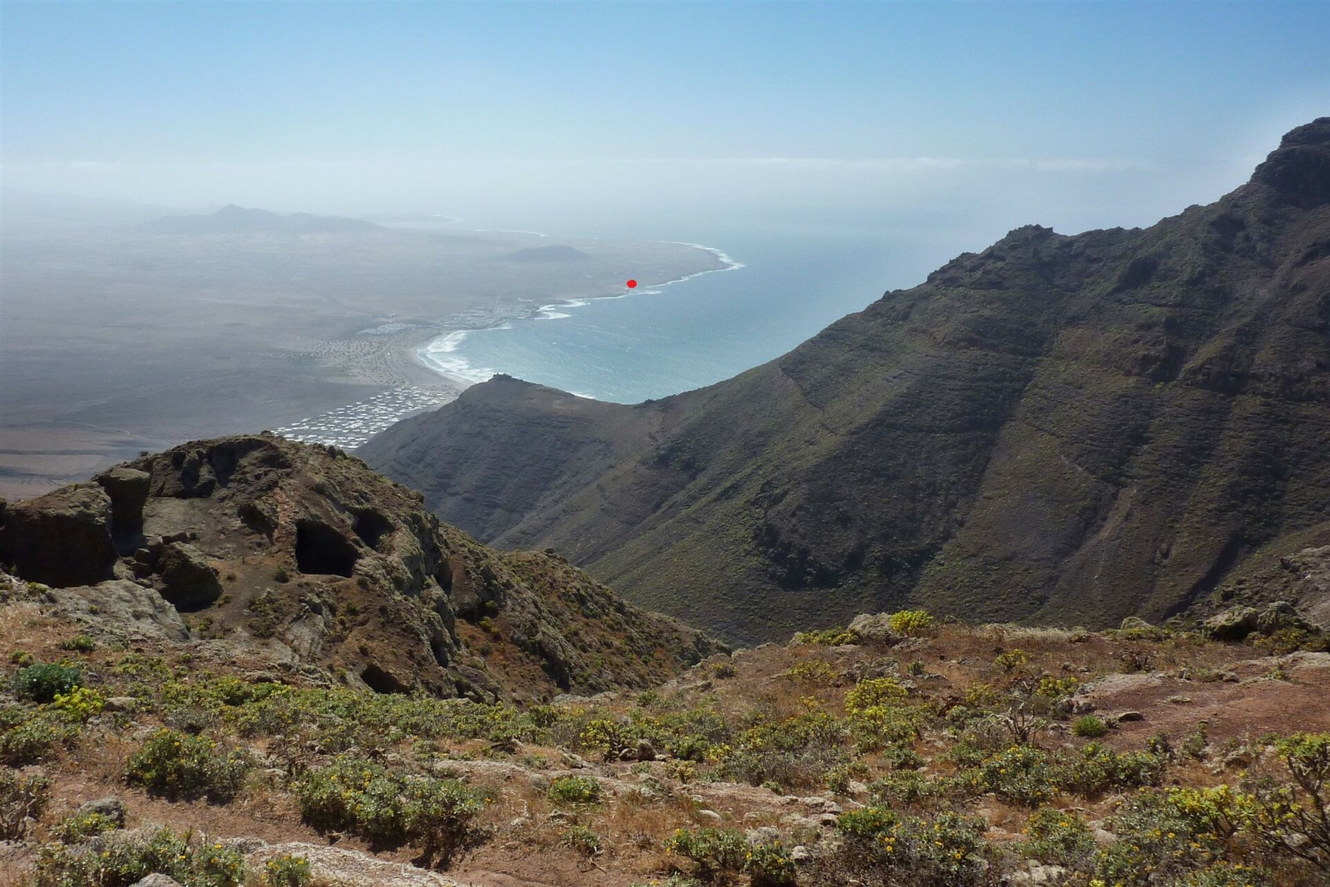 Nach einem kurzen Spaziergang durch die wunderschöne Dünenlandschaft erreicht man bereits den Strand. Untergrund: Anfahrt auf einer Asphaltstraße und ein kurzes Stück Schotterstraße. Zugang zum Strand über Sand. Einkehr: Restaurants und einen Minimarkt findet man im 1,5 km entfernten Ort Caleta de Famara. Den Strand kann man das ganze Jahr über besuchen. Von Mitte Dezember bis Ende Januar weht öfters ein kühler Passatwind. Wer baden möchte, sollte Badeschuhe dabei haben.
