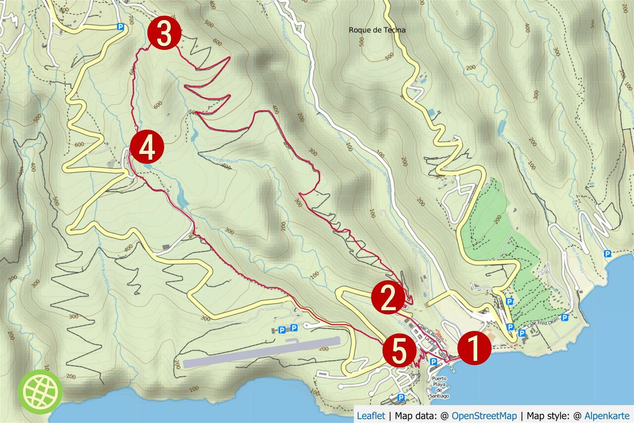 Stets gute Wege, seichter An- und Abstieg sowie eine eindeutige Wegführung. Die einzigen Herausforderungen sind die Länge der Strecke sowie die Höhenmeter. Art des Weges: 70 % Pisten und 30 % Pfade. Keine besonderen Empfehlungen an die Ausrüstung. Einkehr: Restaurant Playa Avenida Marítima 46 in Playa de Santiago. Beste Wanderzeit: ganzjährig. Variante: Mit der Buslinie 3 kann man von Playa de Santiago nach Alajeró (Casco) fahren und den Hin- oder Rückweg als einfache Strecke laufen. Je nachdem, welche Variante gewählt wird, ist die Strecke 8 km oder 10 km lang.