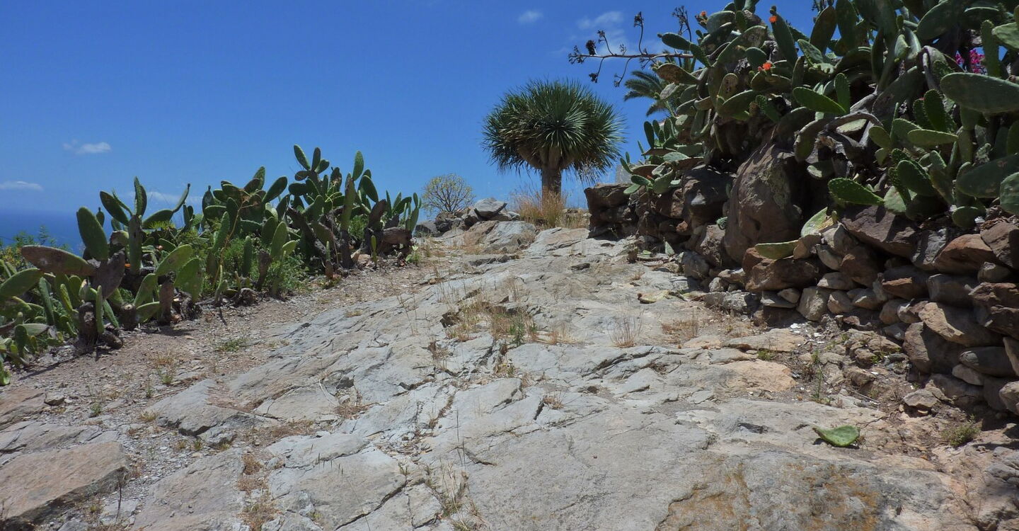 Vor den Toren von Playa de Santiago, aber eher unbekannt, liegt eine kleine Gruppe von Roques zwischen den Ortschaften Antoncojo und Targa. Vom höchsten Punkt, dem Roque de los Moros, genießen wir ein TOP-360°-Panorama über den gesamten südlichen Teil von La Gomera. Richtung Norden kann man bis in das zentrale Hochgebirge schauen. Auf dem Rückweg dieser herrlichen Panoramawanderung folgt ein spannender Abstieg durch den idyllisch gelegenen Bachlauf des Barranco de los Cocos. Palmen und Drachenbäume zieren den engen Bachlauf unterhalb des Roque Redondo bis zum finalen Abstieg nach Playa de Santiago.