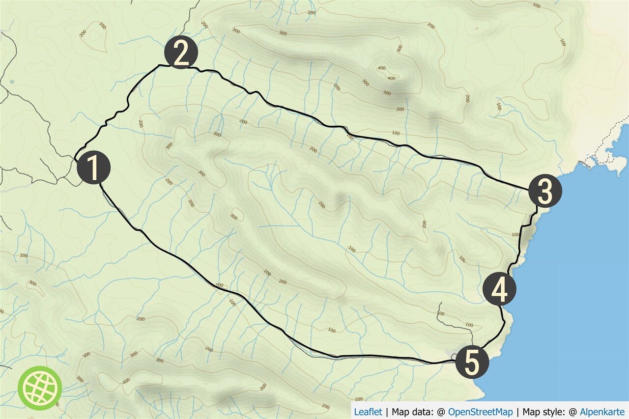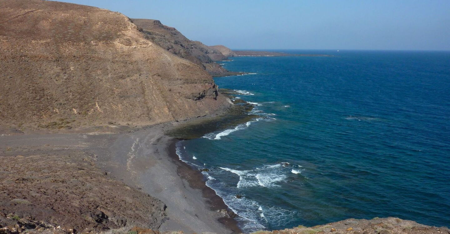 Diese Wanderung führt durch den 1934 gegründeten Naturpark Cuchillos de Vigan. Die 6.040 ha große Region ist gekennzeichnet durch lange, quer zur Küste verlaufende Täler, die das Ergebnis fortlaufender Erosion sind. So führen der Hin- und Rückweg durch zwei dieser beeindruckenden Täler. Im Schutzgebiet sind einheimische Pflanzen wie der Meerkohl und Tiere wie der Schmutzgeier beheimatet. Das Kernstück der Wanderung ist ein sehr selten begangener und wüster Küstenpfad. Vorbei geht es an drei traumhaften schwarzen Sandbuchten, die definitiv zum erfrischenden Bad und zum Verweilen einladen.