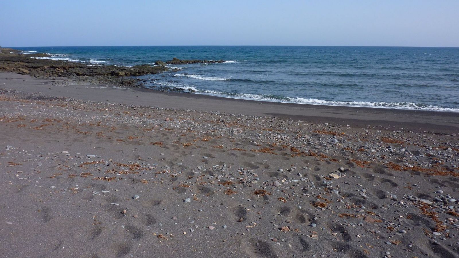 Auf dem Küstenpfad gehen wir nun weiter in südliche Richtung, sehen schon bald die Häuser einer kleinen Siedlung und erreichen nach einem leichten Abstieg auf einem der vielen Wege den (05) Playa Gran Valle (18 m). Auf der Pistenspur im Barranco gehen wir zurück zum Ausgangspunkt.