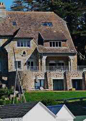 Vom Parkplatz gehen wir unter der Brücke hindurch. Entlang der Galerien und des Museums geht es durch den kleinen Ort 01 Pont-Aven (17 m). Hinter der Brücke gehen wir dann links in die Rue du Port, weitere Galerien folgen. Hinter dem letzten Parkplatz beginnt dann der Wanderweg, auch ausgeschildert Richtung Plage Port Manec`h. Kurz hinter dem Nebenarm eines Flusses gehen wir nicht links, wie der Wegweiser es möchte, sondern geradeaus weiter. Damit die Gesamtstrecke nicht zu lang wird, kürzen wir immer wieder Wegstücke ab. Nachdem wir ein kurzes Stück auf einem mit Steinen gesäumten Weg gelaufen sind, biegen wir halb rechts auf eine Piste ab, an deren Ende wir links durch verstreut liegende Häuser wandern, bevor wir dann links an einem braun verkleideten Schuppen vorbeikommen.