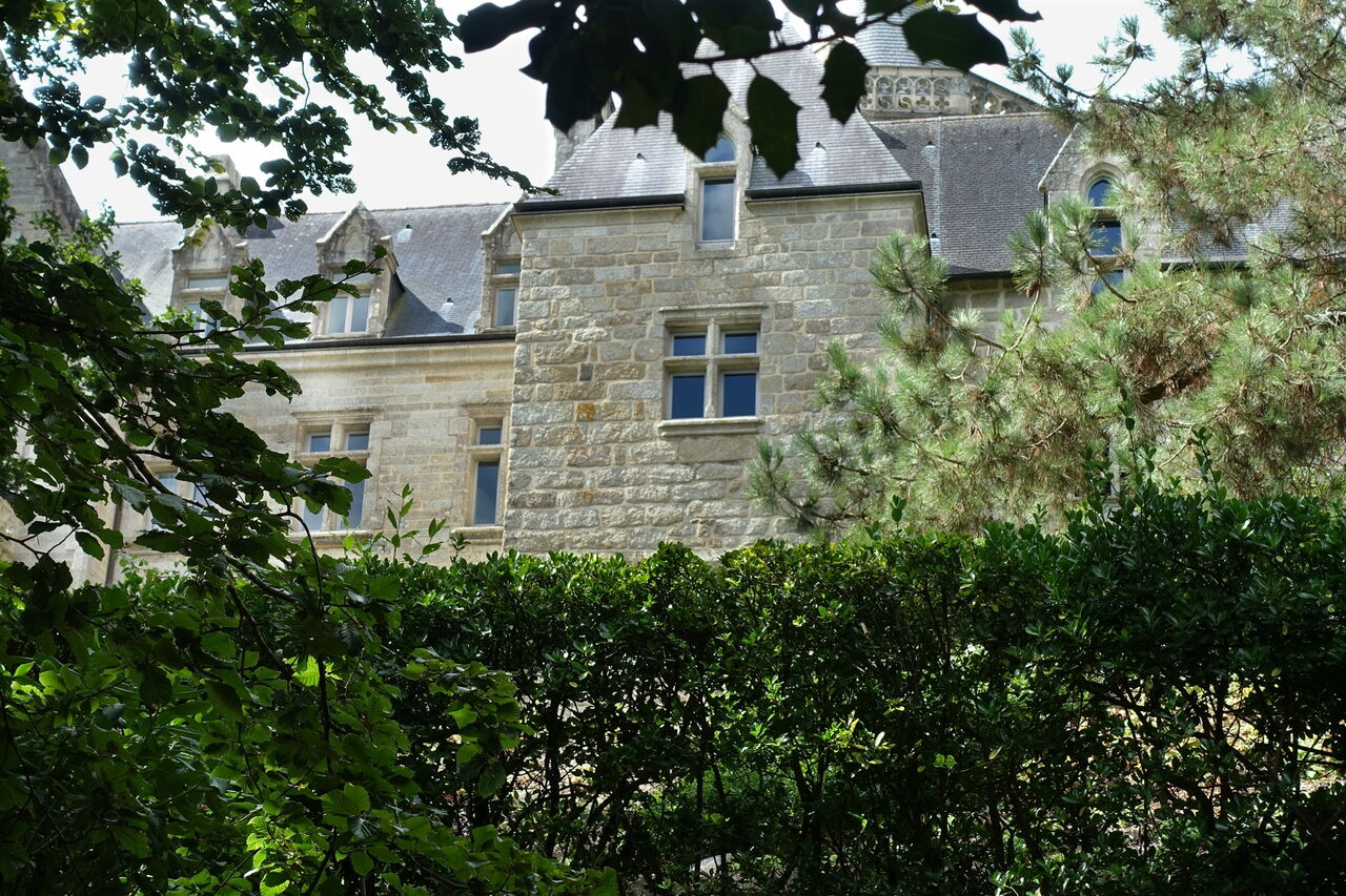 Wir setzen unseren Weg fort. Bei einer Holzbrücke kann man rechts durch das Dickicht des Waldes das im 14. und 16. Jahrhundert erbaute 03 Château du Hénan (10 m) sehen. Die ehemalige Verteidigungsburg wurde im 19. Jahrhundert aufwendig renoviert. Auffällig ist der schiefe Hauptturm, wobei nicht ganz klar ist, ob es ein Resultat des in die Jahre gekommenen Schlosses ist oder eine technische Raffinesse des Architekten, um den immer stark wehenden Nordwestwinden Paroli zu bieten.