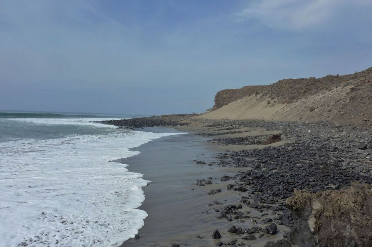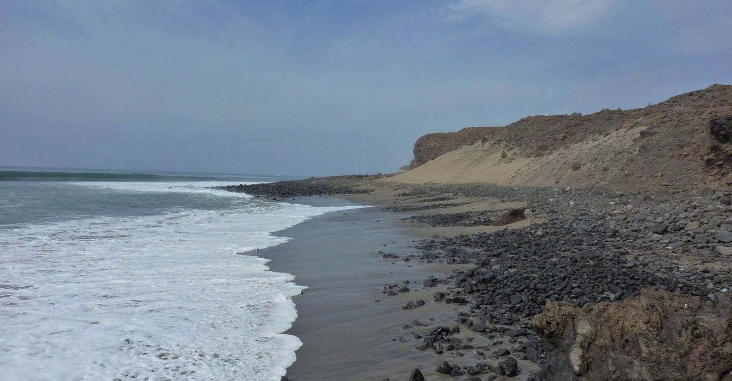 Auf der Jandia-Halbinsel befindet sich das südlichste Ferienzentrum von Fuerteventura. Morro Jable ist ein altes Fischerdorf, das seine Ursprünglichkeit bewahren konnte. Das hohe Jandia-Gebirgsmassiv schützt vor den stark wehenden Nordostpassatwinden. So wandern wir im Windschatten zunächst am wunderschönen Playa de Colorades entlang. Im weiteren Verlauf geht es an Ruinen vorbei und es folgen abenteuerliche Querungen von Barrancos. Der Weg verläuft oberhalb von spektakulären Klippen, bis wir über ein Teilstück des klassischen Fernwanderweges GR 131 zurückwandern. Eine besondere Sehenswürdigkeit können wir im Hafen von Morro Jable besichtigen, das Projekt zur Wiedereinbürgerung der unechten Karettschildkröte – eine nachhaltige Initiative der Insel.