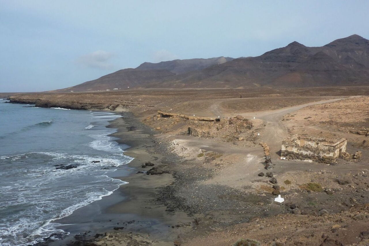 Busanbindung: keine. Pkw-Anfahrt: 23,7 km von der Costa Calma bis zum Parkplatz. Wir fahren auf der FV-2 bis zum Hafen von Morro Jable. Dort angekommen, verlassen wir den Kreisverkehr bei der ersten Straße rechts und fahren nun immer parallel zur Mole, bis wir das nordwestliche Ende des Hafens erreicht haben, wo wir das Auto parken. Geokoordinaten Parkplatz: 28.052433 -14.364083.